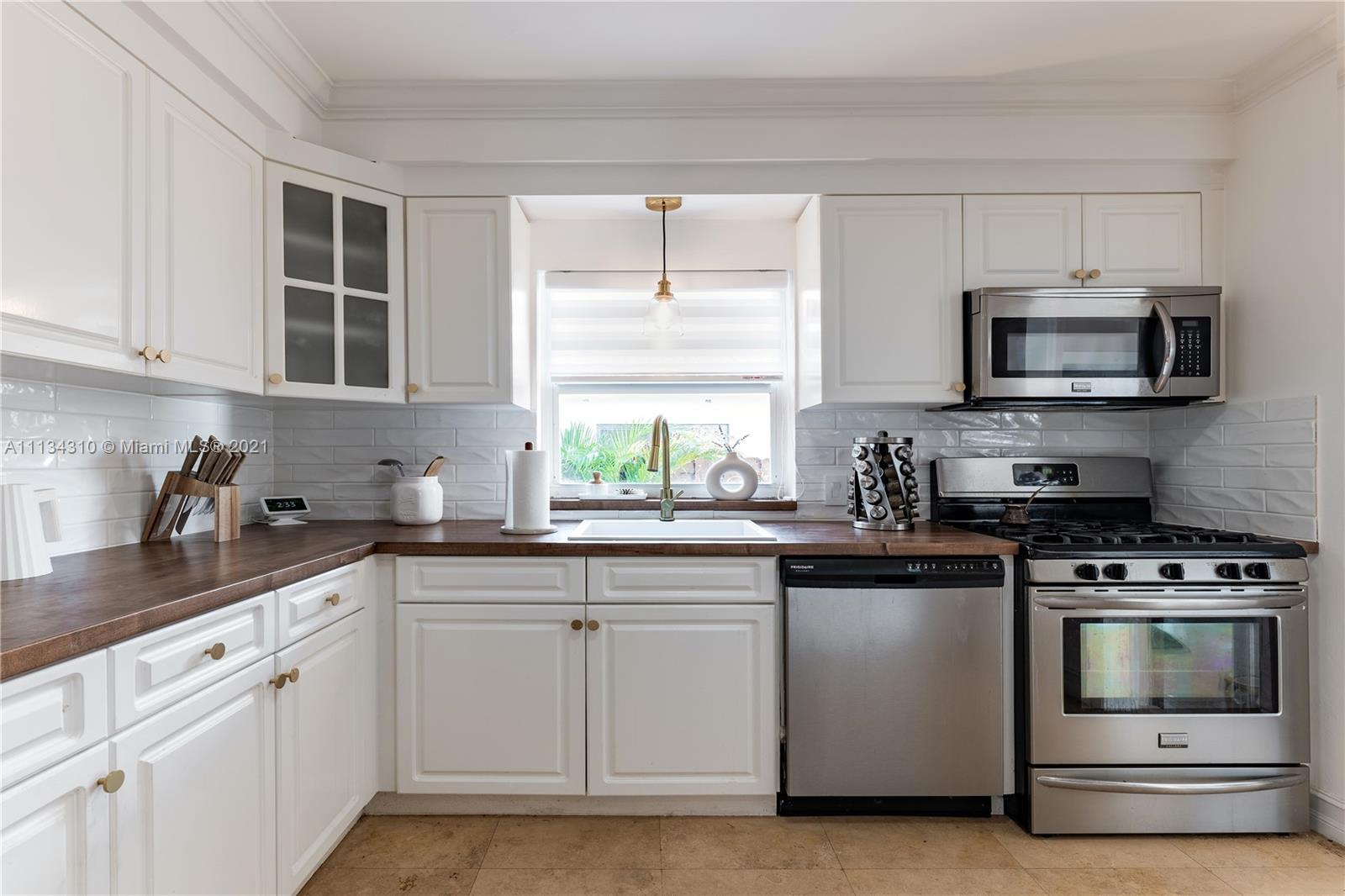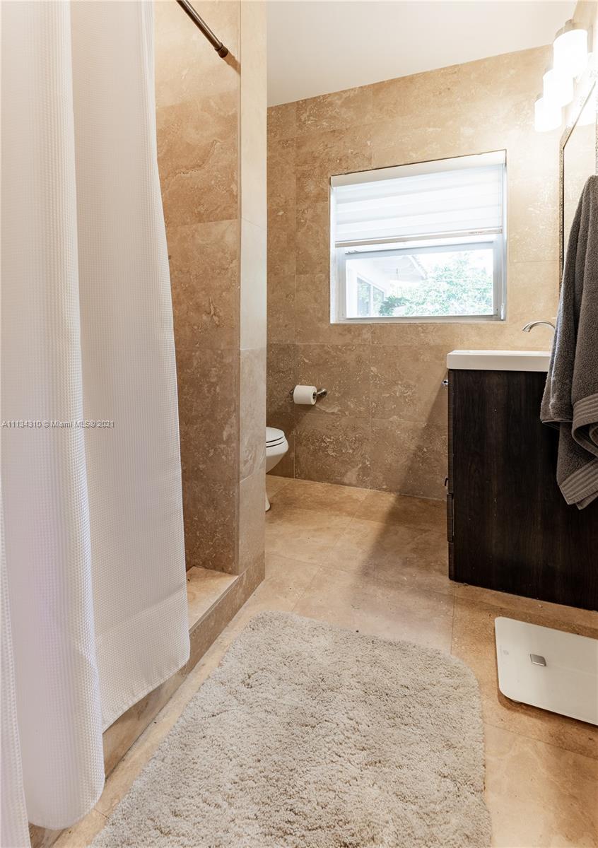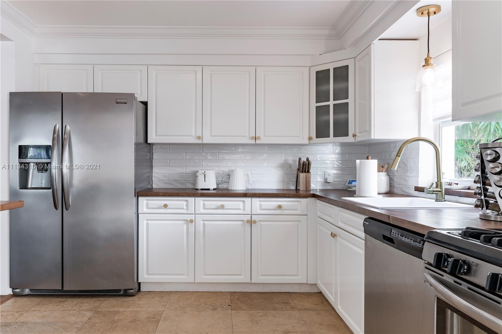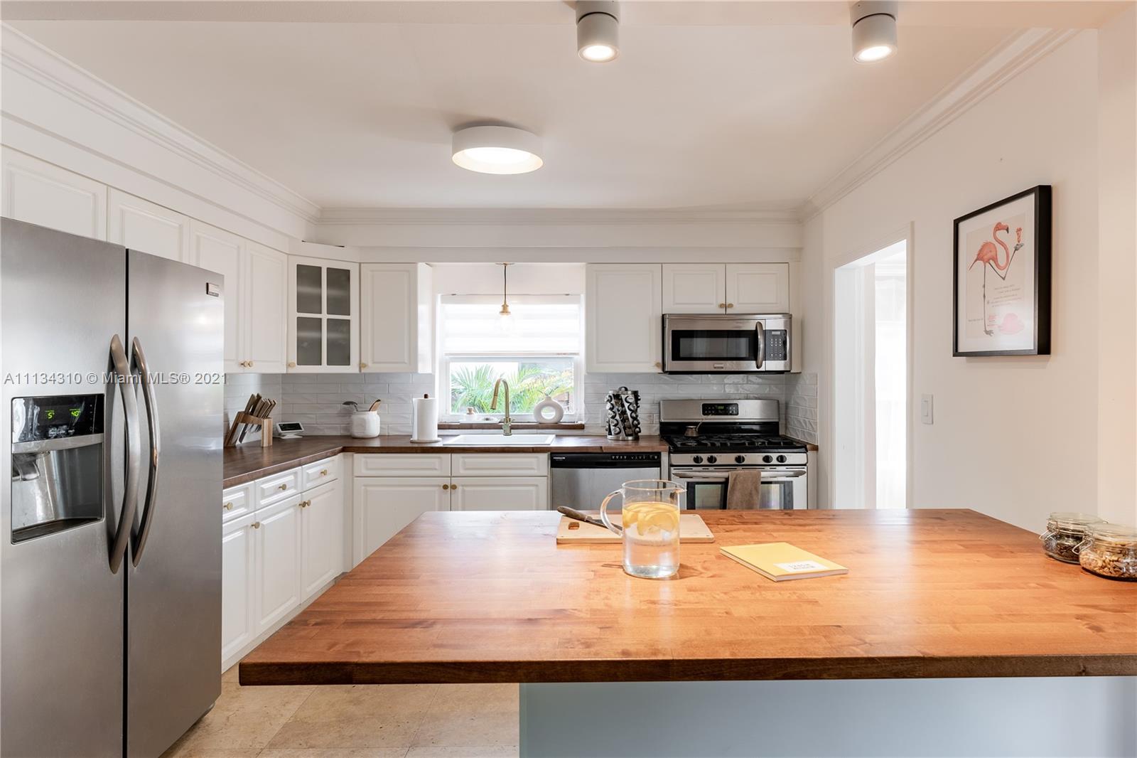 This unique home features Art Deco style updates. Spacious property with a split bedroom design, featuring a second master with its own entrance and a ductless split system AC. Renovated kitchen with SS appliances & hand-made wooden countertops, new washer & dryer, tastefully updated backyard, and front porch. Walking distance to houses of worship and Hollywood Central Elementary. Minutes to the Ocean. The driveway can easily accommodate parking for 3 vehicles. Smart home integrated; including doorbell, cameras, smart thermostat & locks on all doors that can be opened with your phone. Make this your home and enjoy the Hollywood Lakes Community together with friendly neighbors.
