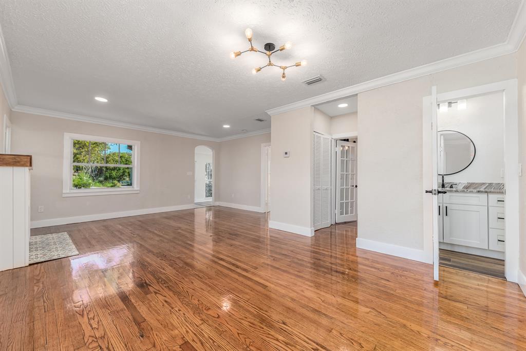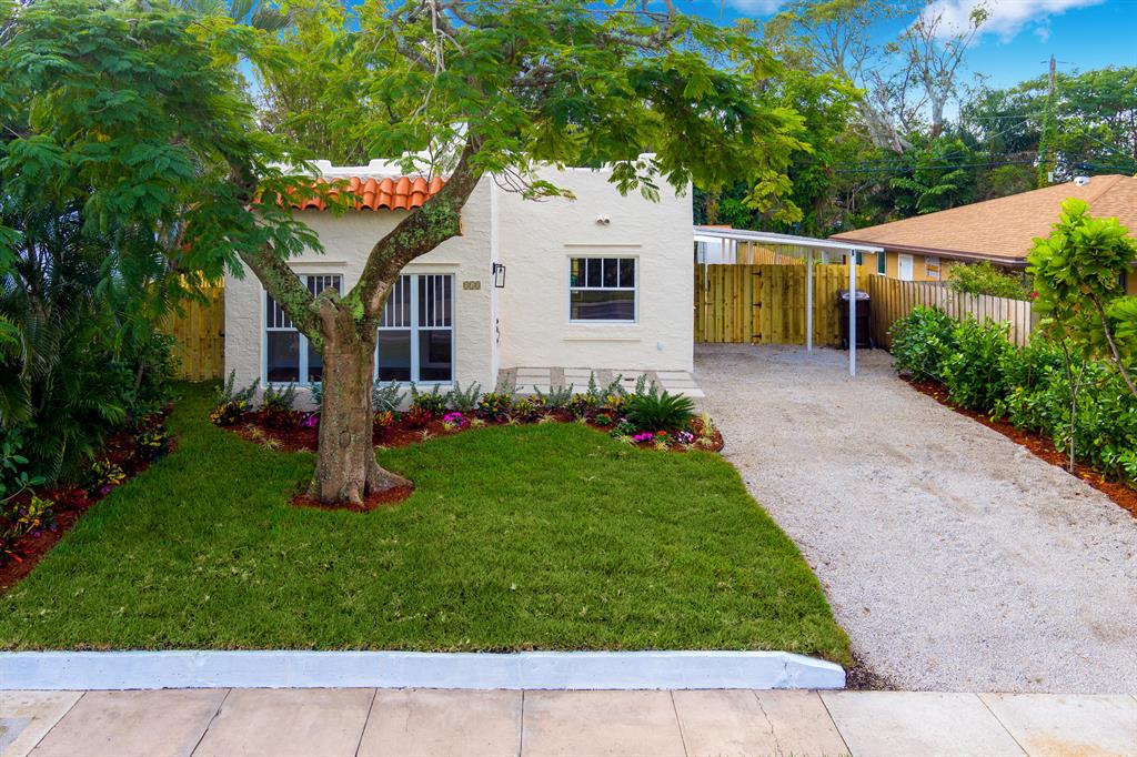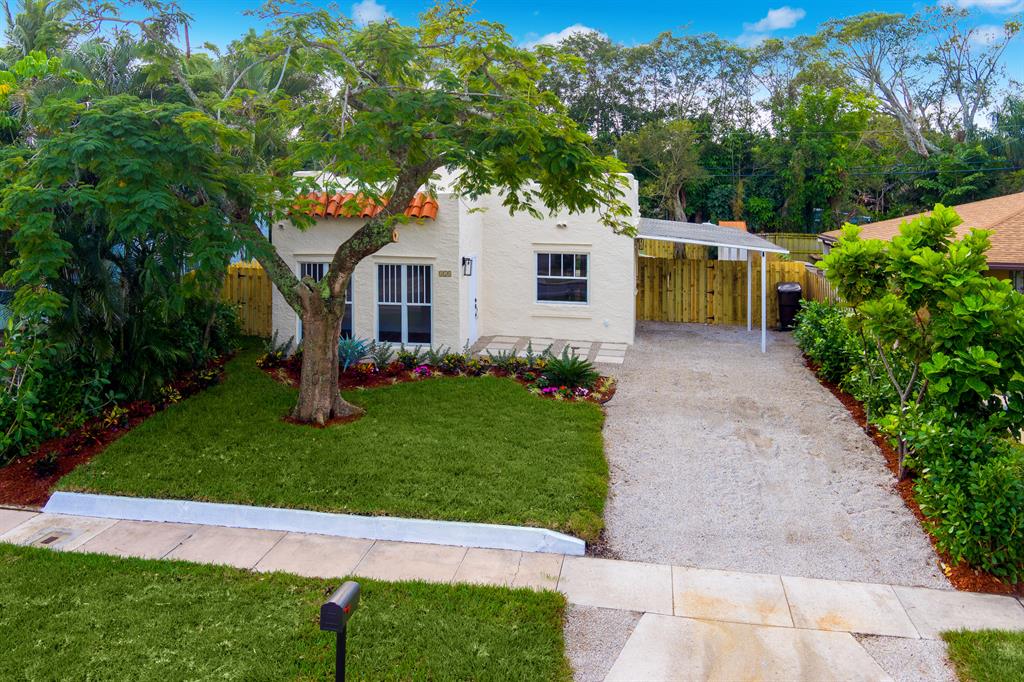 West Palm 1925 Spanish Stunner! This 3bed/2 bath home has been beautifully renovated with a touch of modern yet keeping its original charm. Brand new kitchen with custom 42'' soft close wood cabinets, brand new SS appliances, wine cooler, granite counter-tops, gorgeous refinished Dade county pine floors, new bathrooms with custom Spanish tile, new custom wood vanities w granite, new AC (2020) New WH (19) new plumbing fixtures, new light fixtures inside & out, freshly painted inside & out, new decora switched & outlets, new modern baseboards & door casing as well as elegant crown molding, decorative fireplace, French doors, large covered patio, professional landscaping w fresh new sod & tropical plants entire property, fully functional irrigation system and new fully fenced backyard.