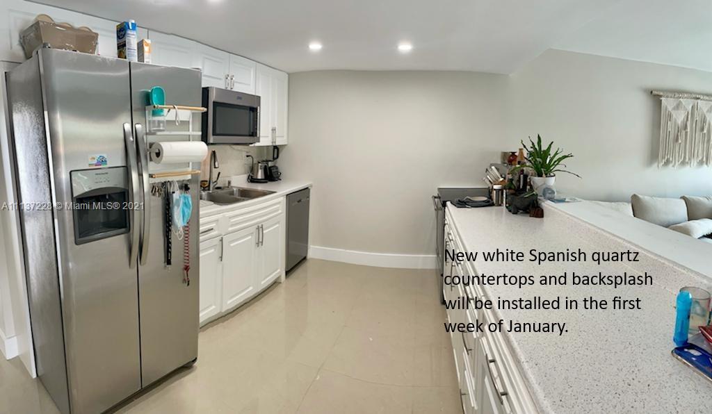 Completely remodeled 2 bedrooms with a den turned into a bedroom. 20ft community dock for owners available. Hurricane impact windows, new vinyl wood imitation floor on the second floor, porcelain on the first floor, new stairs, new custom closets, new modern chandleries, new baseboards, new dimmers/lights switch on the second floor, freshly painted in the summer, new closets doors, new blinds, new fans in the master bedroom and living room. Appliances are less than 14 months old. Massive commercial AC is 2 years old which was moved to the rooftop. The patio/deck was just finished a week ago giving a modern industrial feel. New Spanish quartz countertops and backsplash for the kitchen, stairs railings, and a new door for the master bathroom will be installed in the first week of January.