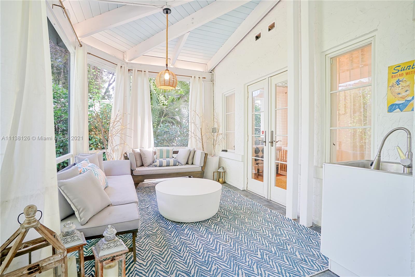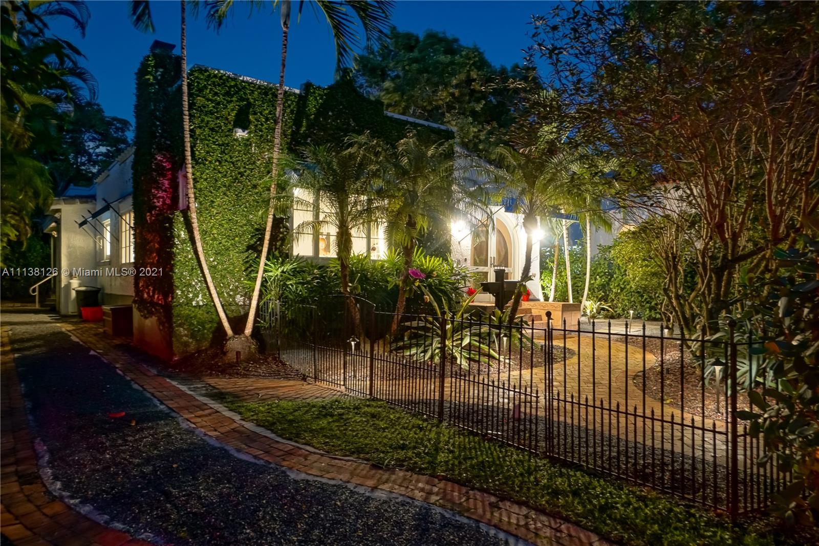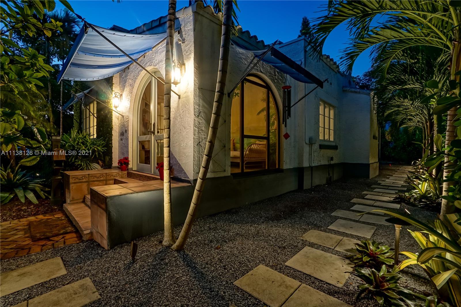 This historically designated 1920's classic Old Spanish is way bigger than it appears from the street! Charming to the max 2/2 with den, impact windows and doors, foyer porch entry, updated kitchen and baths, high ceilings, original Dade County Pine floors, fireplace, original ceiling picture moldings and hallway transom windows. Very special and super spacious screened great room across the back of the home - ideal place to gather for dinner parties or to watch sports on the flat screen TV. Master bedroom has walk-in closet, new bath and separate room that could function as a den, office, nursery or dressing room. Original architect was the famed H.G. Fink. Desirable location close to downtown Coral Gables-EZ walk to restaurants, book stores, cafes and shops. Open house 12/26/21, 12-3 PM.