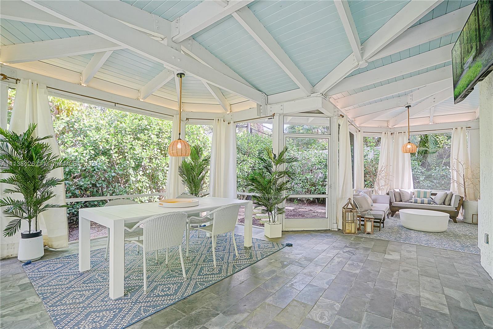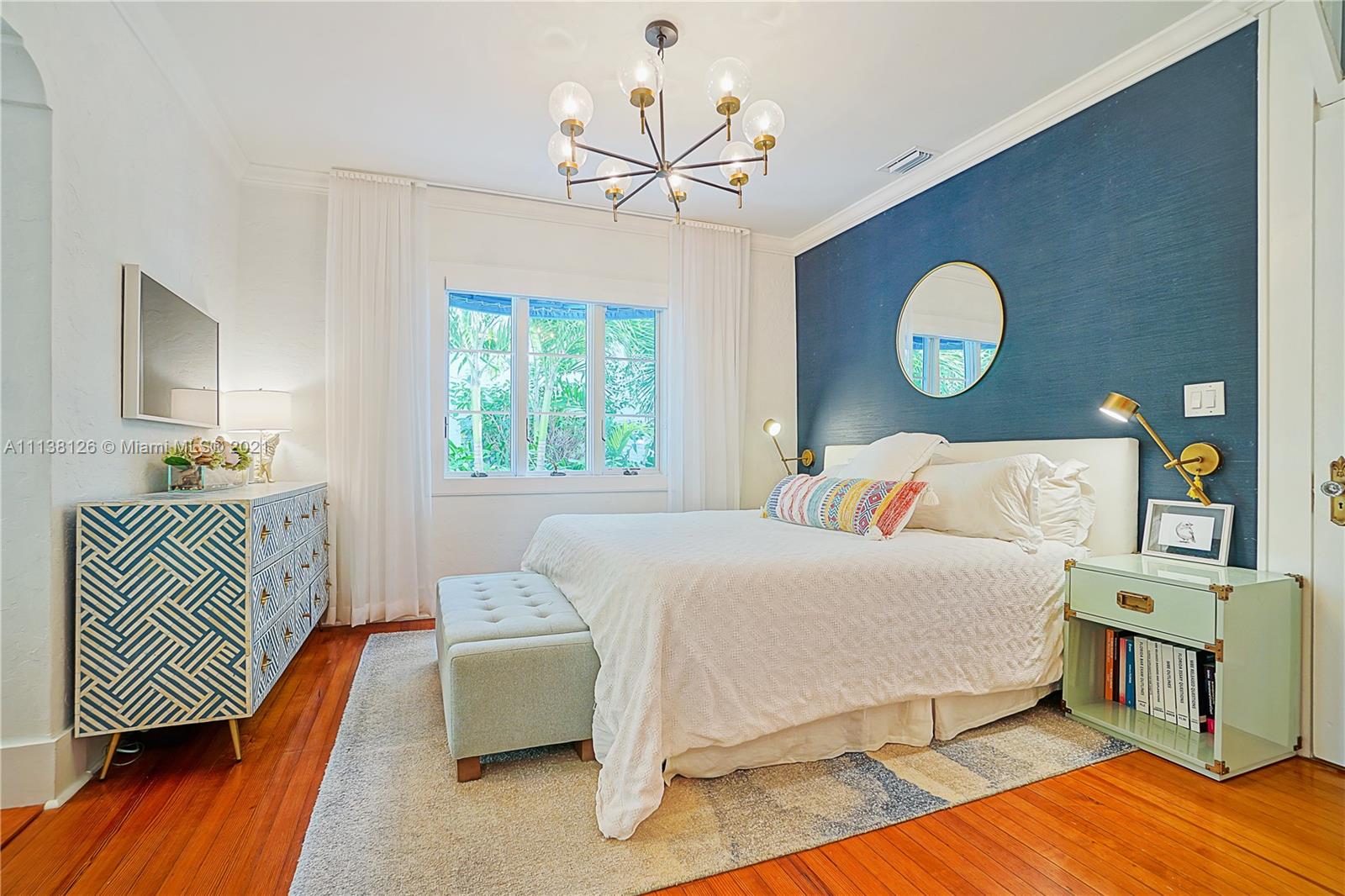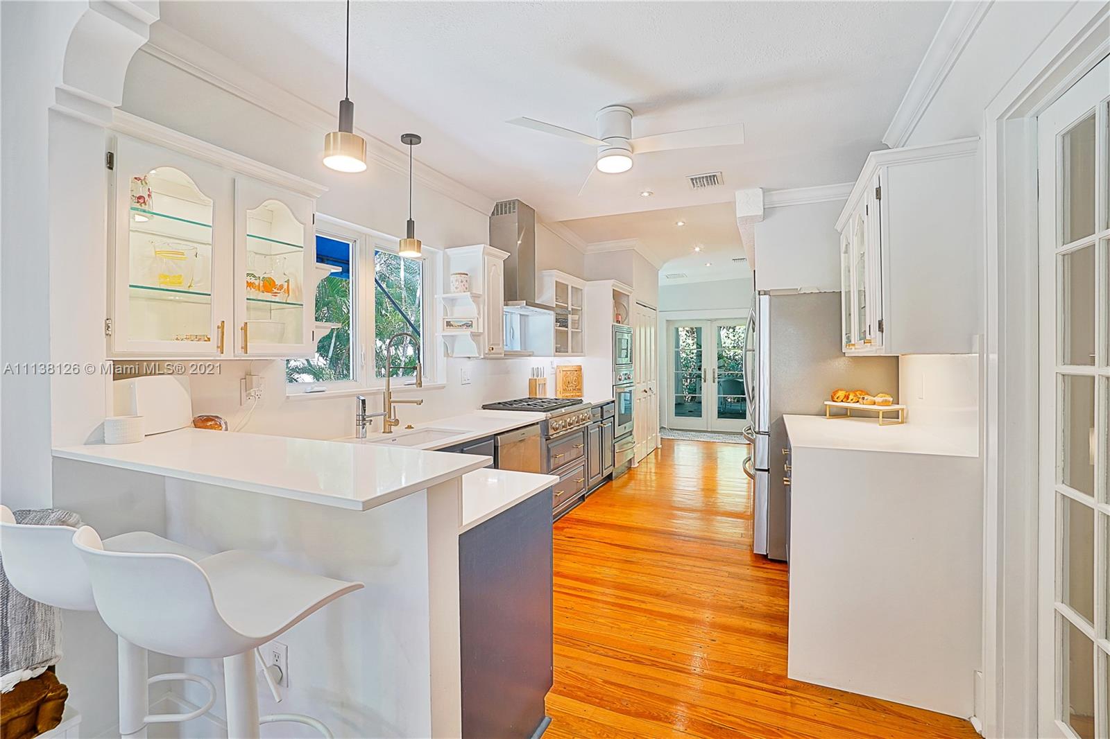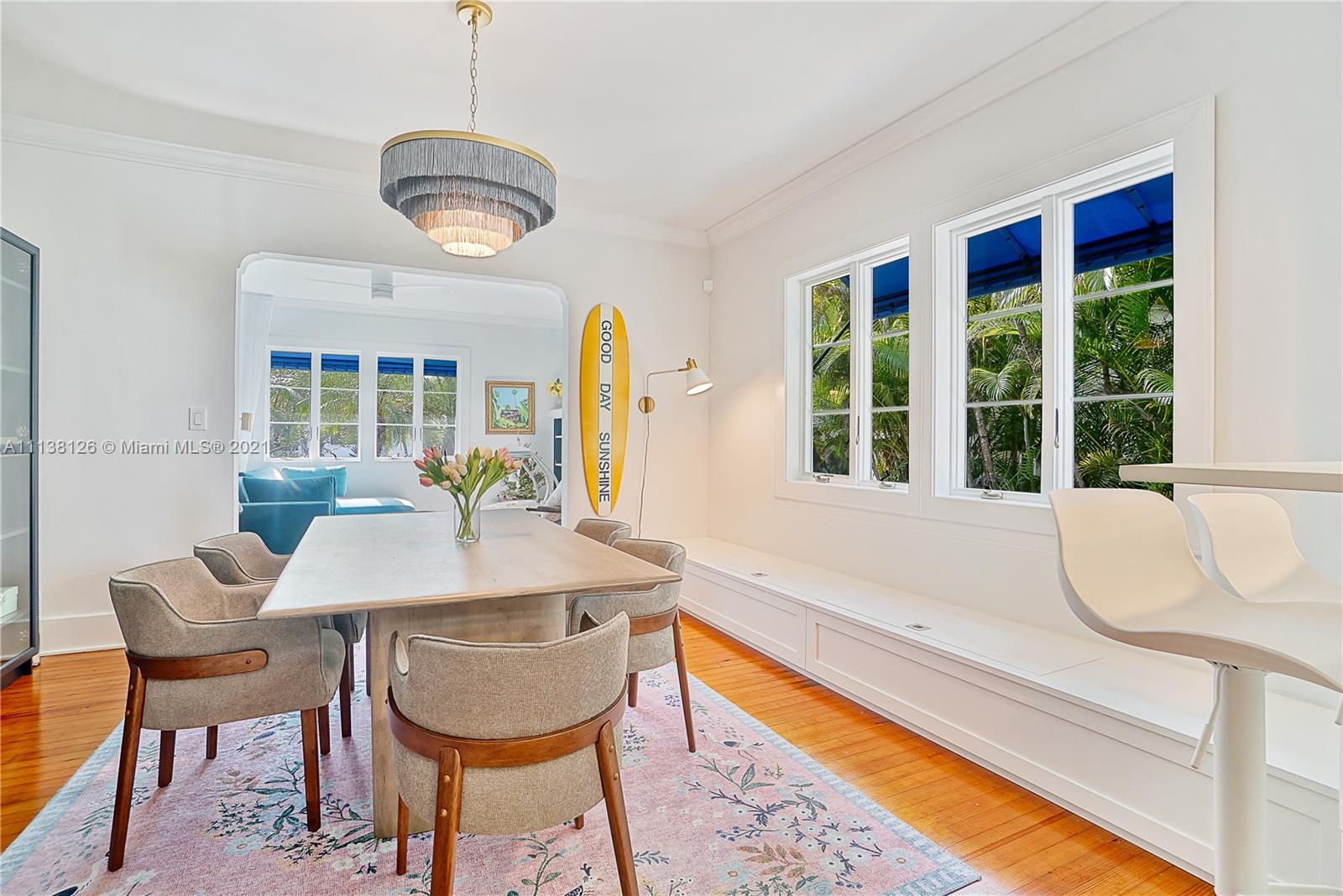 This historically designated 1920's classic Old Spanish is way bigger than it appears from the street! Charming to the max 2/2 with den, impact windows and doors, foyer porch entry, updated kitchen and baths, high ceilings, original Dade County Pine floors, fireplace, original ceiling picture moldings and hallway transom windows. Very special and super spacious screened great room across the back of the home - ideal place to gather for dinner parties or to watch sports on the flat screen TV. Master bedroom has walk-in closet, new bath and separate room that could function as a den, office, nursery or dressing room. Original architect was the famed H.G. Fink. Desirable location close to downtown Coral Gables-EZ walk to restaurants, book stores, cafes and shops. Open house 12/26/21, 12-3 PM.