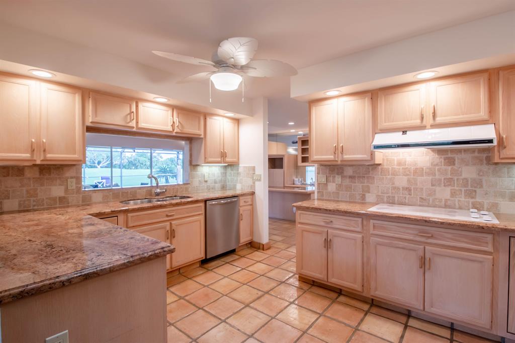 MAJOR PRICE REDUCTION! Country Club living at its finest! This spacious 3 bedroom plus den, 2 1/2 bath home is situated on a magnificent golf course lot with no houses behind it. The bathrooms have been totally remodeled. The primary suite offers 2 walk in closets. Outdoor summer kitchen Epoxy garage floor with golf cart garage. 2 zone A/C. Sprinklers use well water to save on water bills. This home is ready for you to make your own!