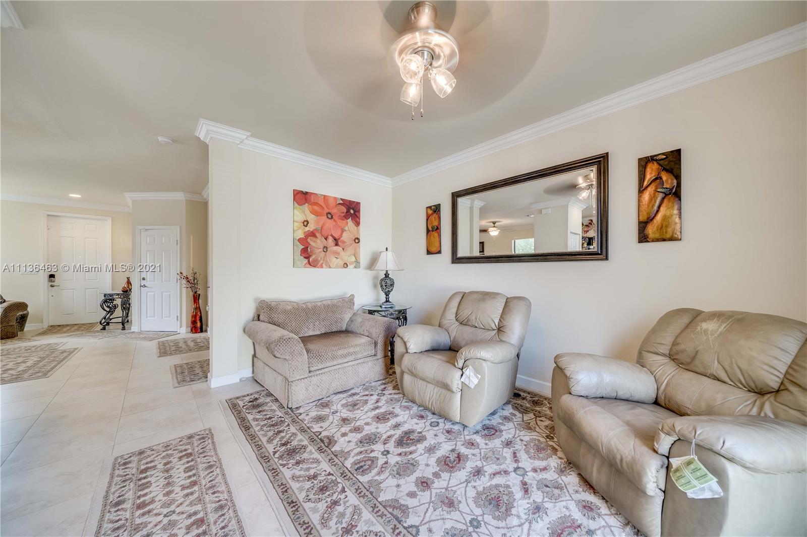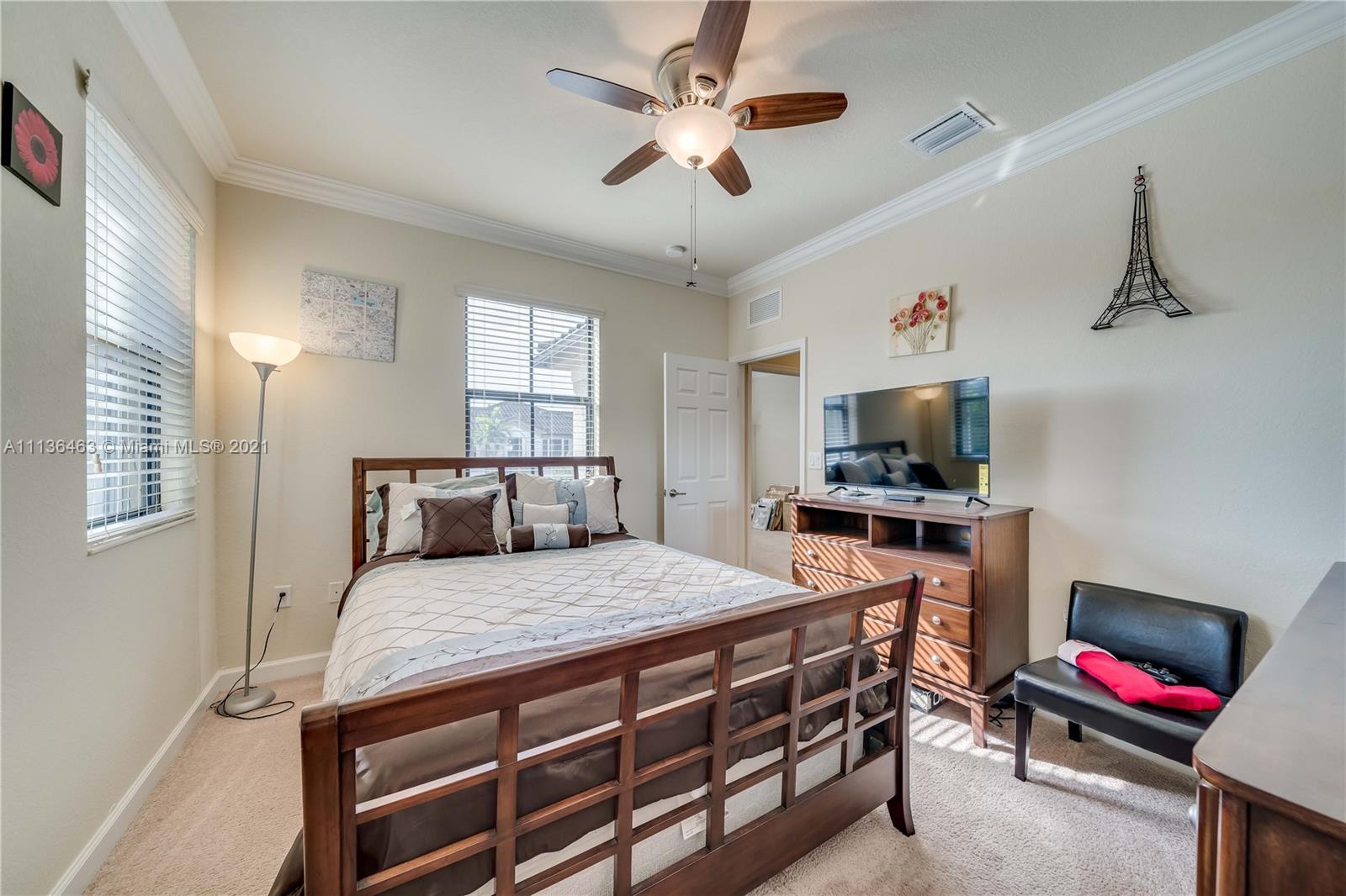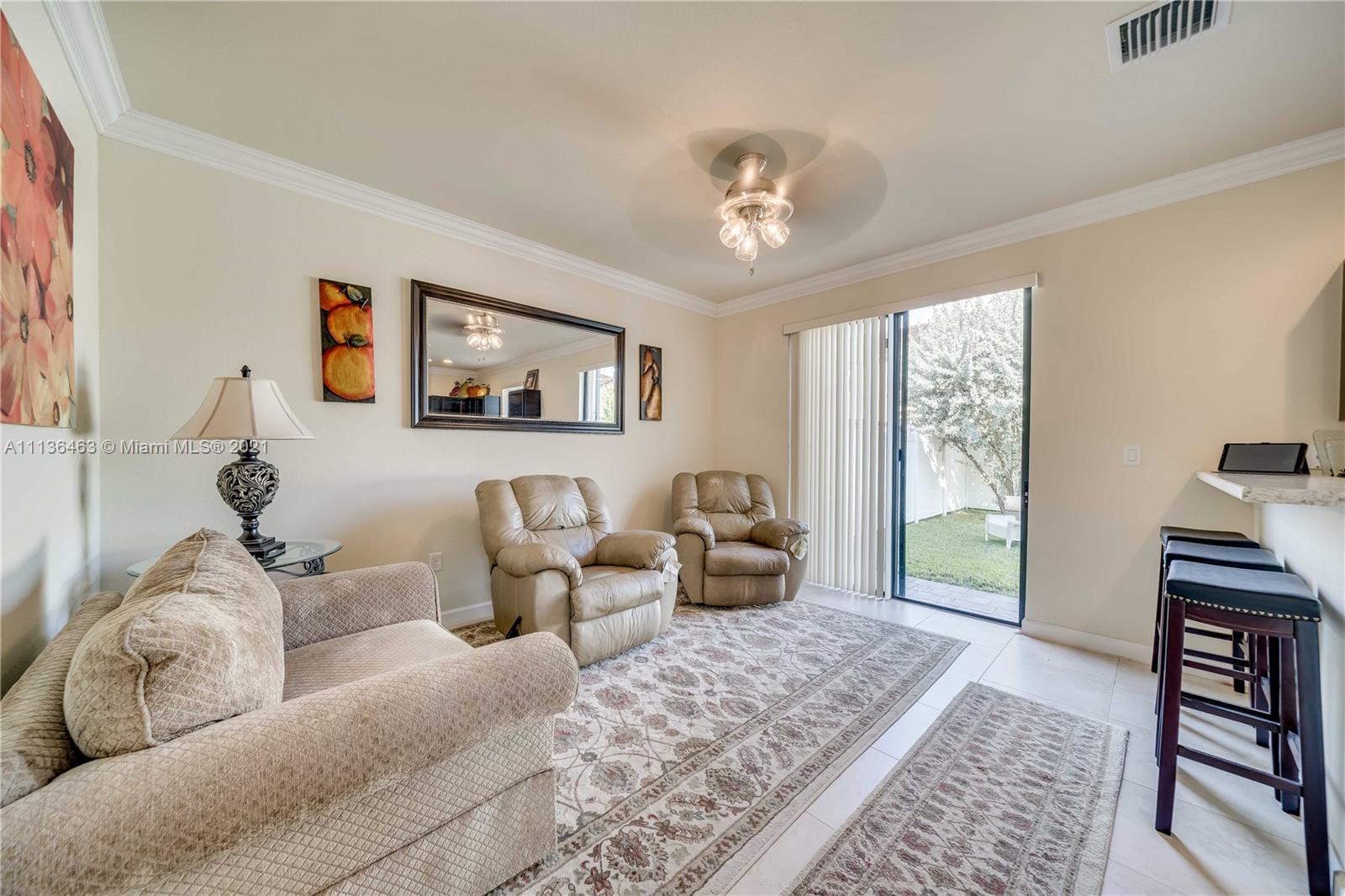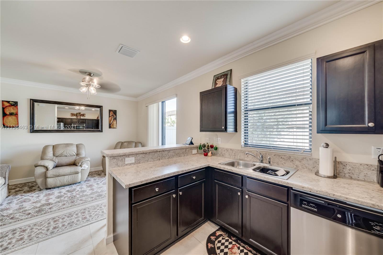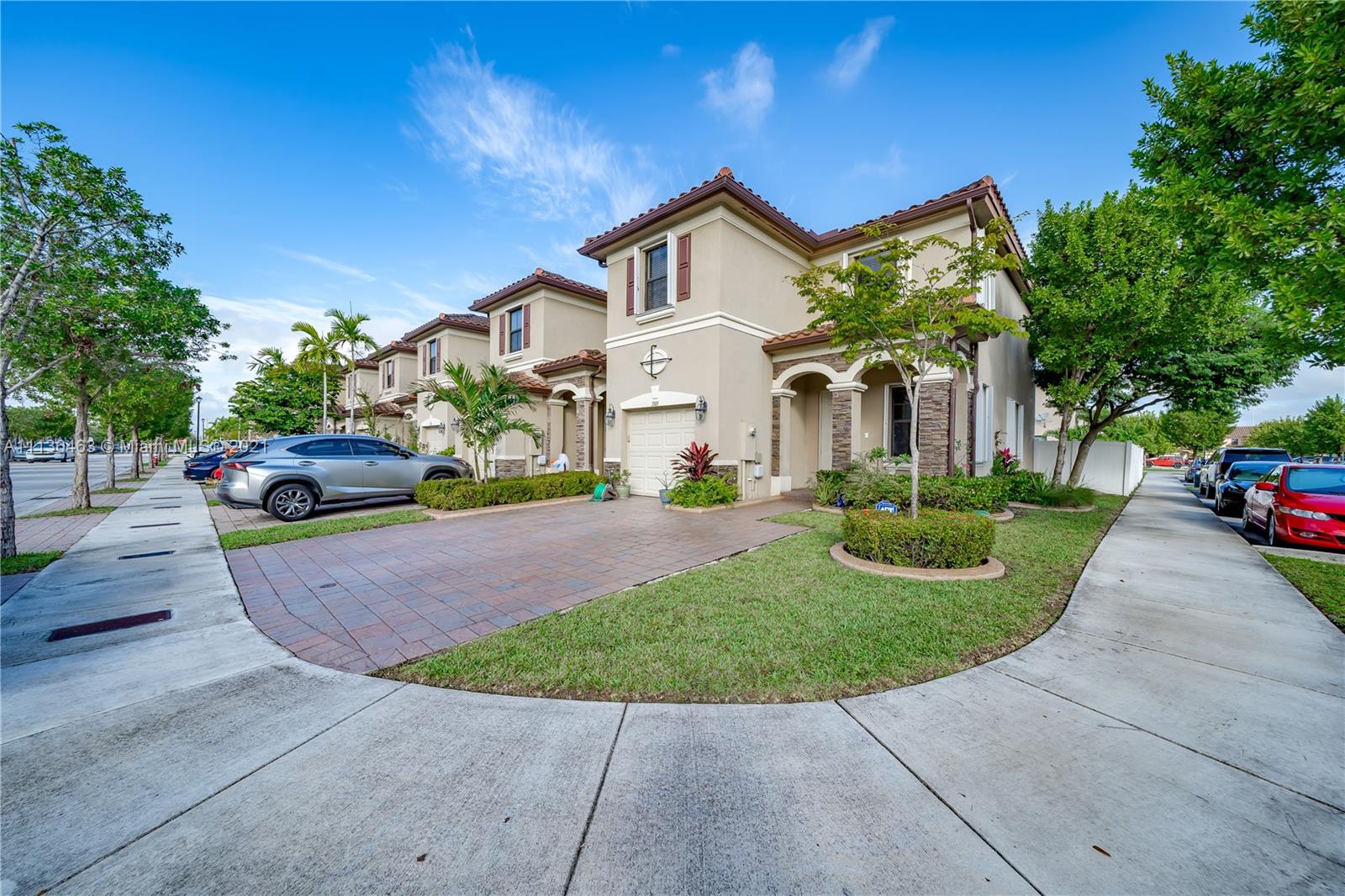 3 Bed 2 and 1/2 Bath 2 Story Corner Unit Townhouse with 1 Car Garage INTERIOR FEATURES: 18 Inch Tile throughout the Lower Level•6' Inch Baseboards and Crown Molding Up and Down•Fresh Neutral Interior Paint•Nice Big Front Room full of Windows•Separate Family Room•36' Dark Pine Cabinets•Stainless Steel Appliances•High Hat Lights•Snack Bar overlooks Family Room•Pedistal Sink in Half Bath•Raised Panel Interior Doors•Fully Carpeted Upstairs•2nd Floor Laundry•2 Walk In Closets•Large Bedrooms•Upgraded Shower Tile n 2nd bath•Master with Tray Ceiling & Double Crown•Dual Sinks in Master•Master Shower with Glass Doors EXTERIOR FEATURES: Complete Set Accordion Shutters•Fenced Backyard•2 Car Wide Large Paver Driveway•Covered Front Entry•Concrete Landscaping Boards•Nearby Guest Parking•Gated Community