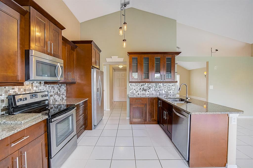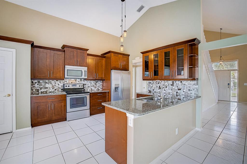 This Boca Raton two-story home offers granite countertops, and a two-car garage.