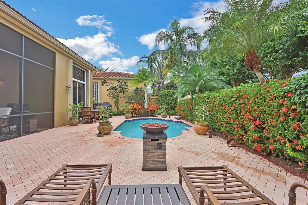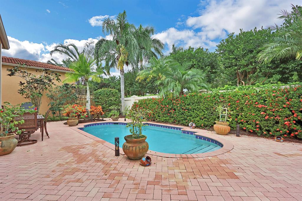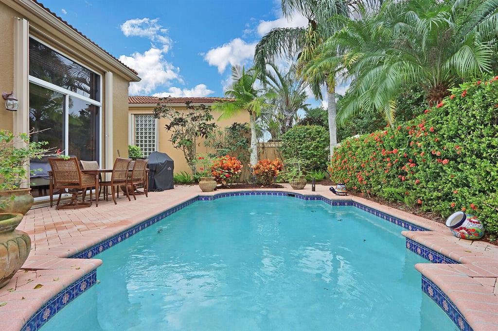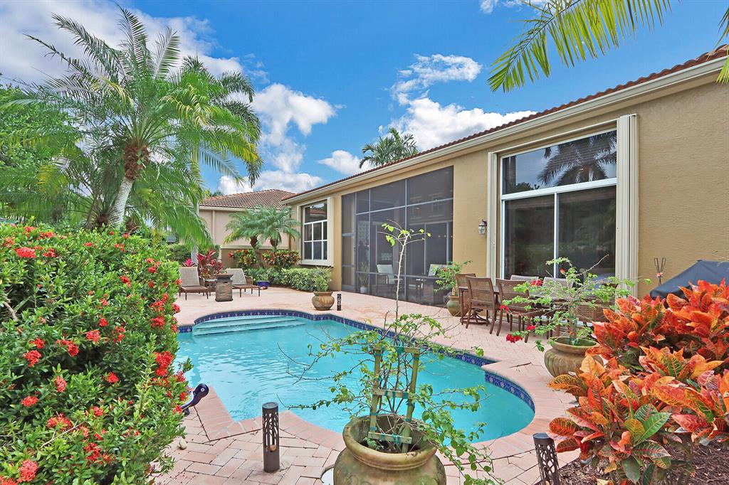 Welcome to your own private oasis! With a convenient location within the award-winning Club at Ibis, this two bedroom, two bath PLUS DEN FORMER BUILDER'S MODEL impresses with soaring ceilings, an open great room plan and a RECENTLY REPLACED (2017) ROOF!!! The backyard of this ''Trevi'' model offers incredible privacy and is perfect for South Florida living! The ample screened area and over-sized patio are perfect for serene outdoor relaxation as well as dining al fresco--in complete privacy! Bask in your own private roman-style pool surrounded by lush tropical landscaping (landscaping maintenance is included in the HOA fee.)