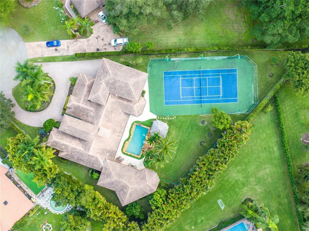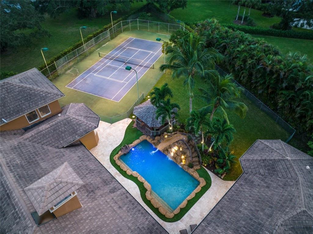Simply a stunning & commanding estate within a highly exclusive community. Dramatic yet Light via walls of impact glass. Completely reconstructed in 2004. With 7,911 total Sq. Ft., lighted tennis court, 4 car garage, resort-style pool with waterfalls & slides, office, gym, au pair suite, huge loft, billiard room, craft room, butlers pantry, fireplace, gazebo, sprawling lot & a location within a quiet cul-de-sac, this home is a luxurious & private retreat. The kitchen is impressive in size, with glorious butted glass windows, top-of-the-line appliances, a large island, granite, pot filler, & fine wood cabinetry. The Sublime owner's suite is expansive & features a spa-like bathroom. Large living areas and a flexible floorplan lend for endless possibilities. Updates & Upgrades in attachments
