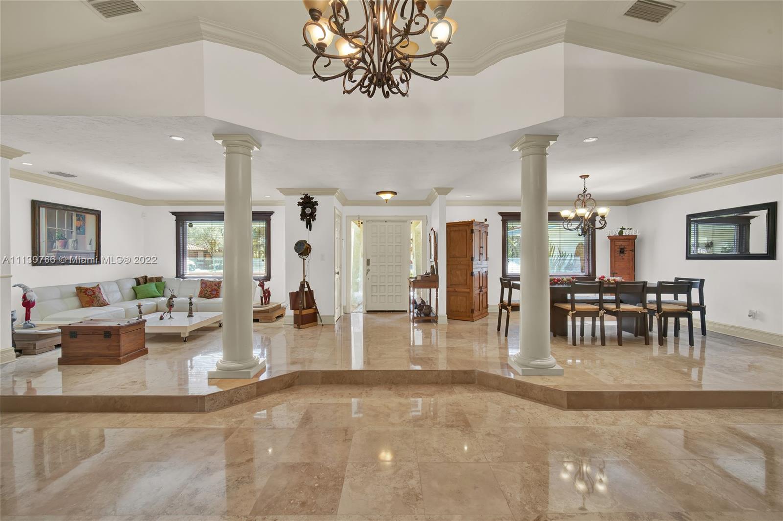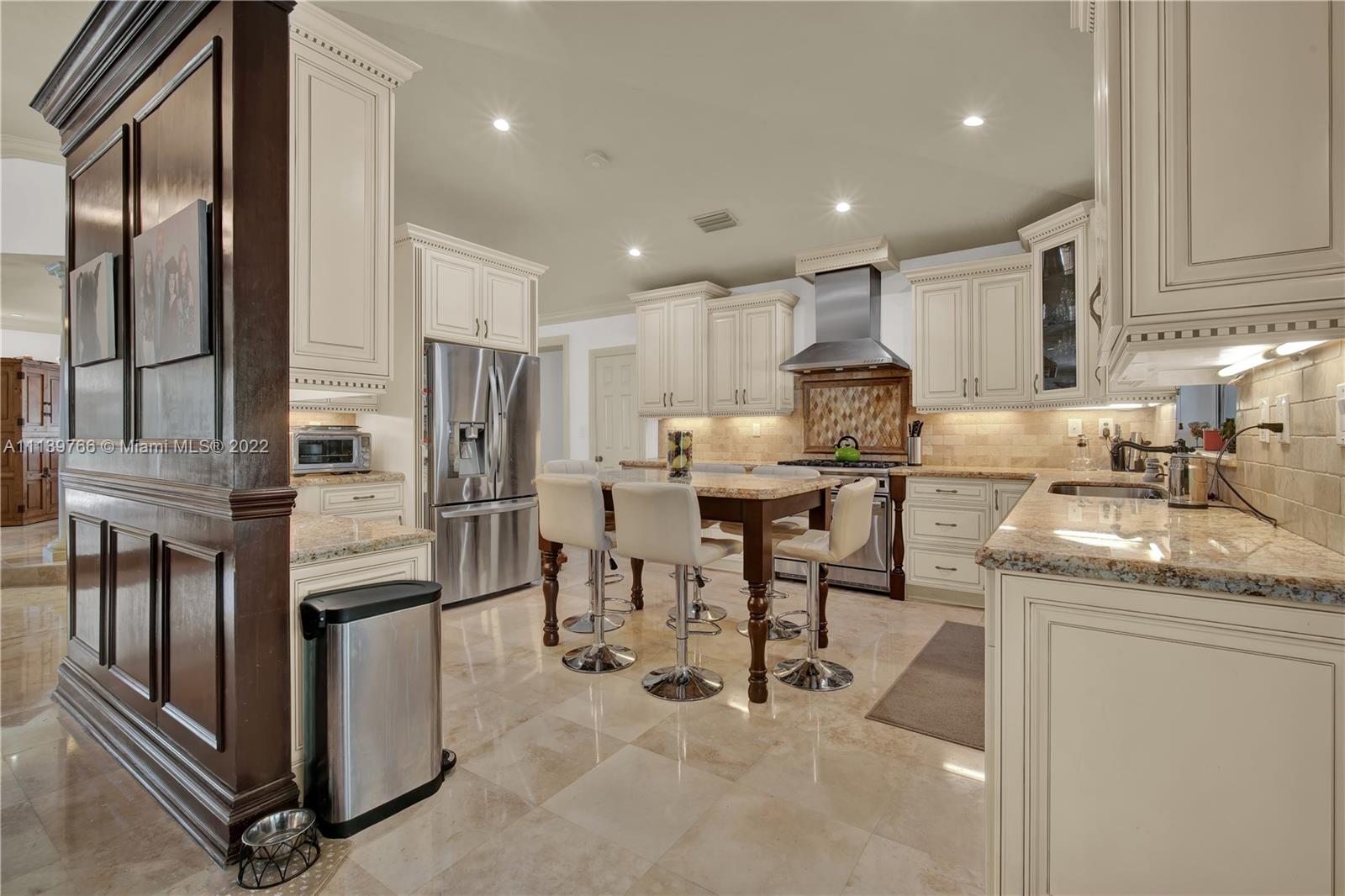 Welcome to this amazing corner lot home in the prestigious Ivanhoe Estates, equestrian and friendly town of Southwest Ranches, your own private Oasis! This elegant home features 5 beds, 4.5 baths. Fabulous floor plan perfect for entertaining with a romantic fireplace. Marble floors throughout main area and wood floors in bedrooms. Large Kitchen, tons of cabinets, island, granite counters and stainless-steel appliances. Separate living room, formal dining room, family room and breakfast area. Updated bathrooms, crown moldings, impact windows. Outdoors, an extended covered patio perfect for entertainment. Plenty of parking & room for your boat, RV or motorcycle with a low HOA. Having the best of both worlds in a small community in Southwest Ranches with horses being welcomed.