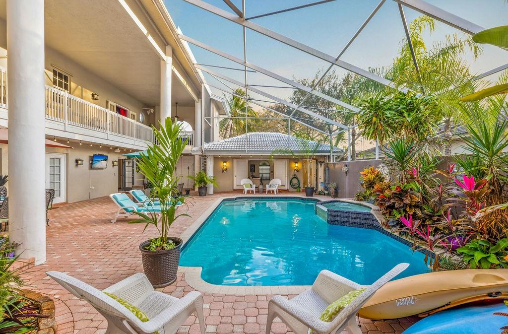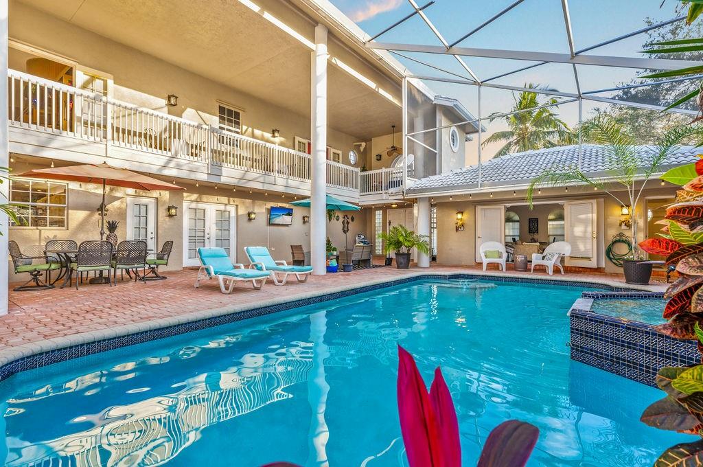 Corner courtyard home with Inlaw suite. Original roof/no issues. Has been maintained throughout. 4 bedroom 4 bath. New tankless water heater in primary bath. Three bedrooms three baths in main house Plus Inlaw suite which gives you the fourth bedroom and the fourth bath. Walk to Stoneman Douglas High School! HOA $68 per month Theater Seating for 30 guests. Very rare opportunity to hold seminars, training, functions! This theater comes with a separate bar area to really entertain your guests.