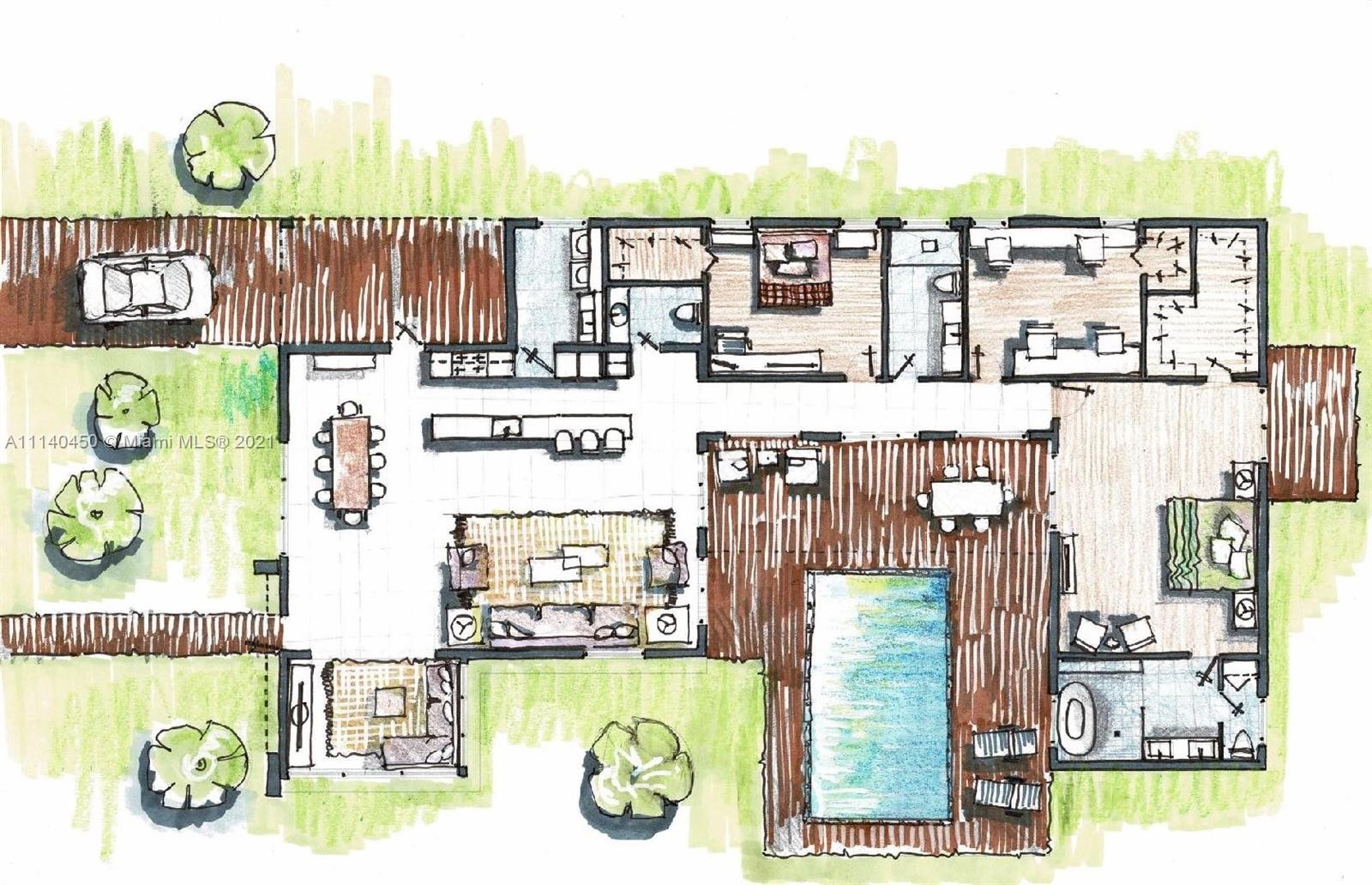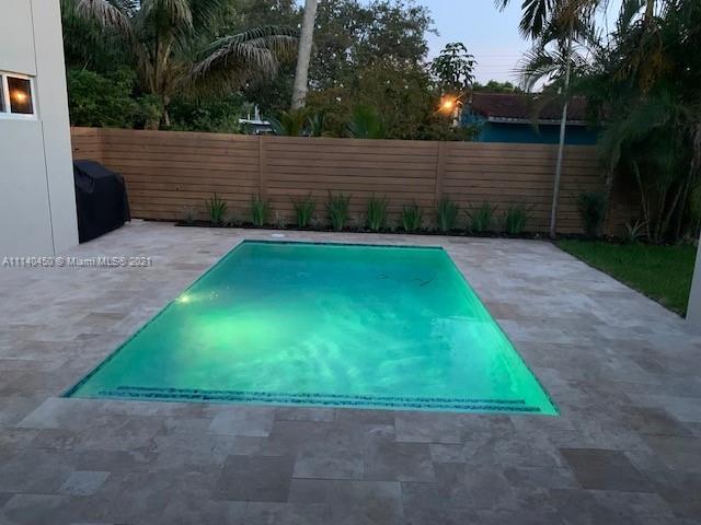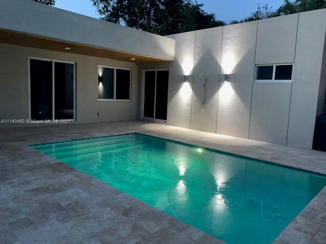 NEW CONSTRUCTION of an addition. Created for the casual Florida lifestyle, the house was designed surrounding a central courtyard pool making the pool into a centerpiece. Open concept generous living area integrated to a kitchen with a 4th bedroom or den .Generous two bedrooms (14''x12'')with walk in closets .The MASSIVE PRIMARY SUITE , (17'6''x 23' 6) features walk in closet and spa bath with a soaking free standing tub and shower in a separated wet area, and toilet closet with linen closet. The house also has a dedicated laundry. All impact rated window, security cameras, circular pavered access & driveway ,custom Italian design cabinetry, SS appliances, and more .Located in Poinsettia Heights, this home is convenient close to shopping, dining, beaches & downtown.