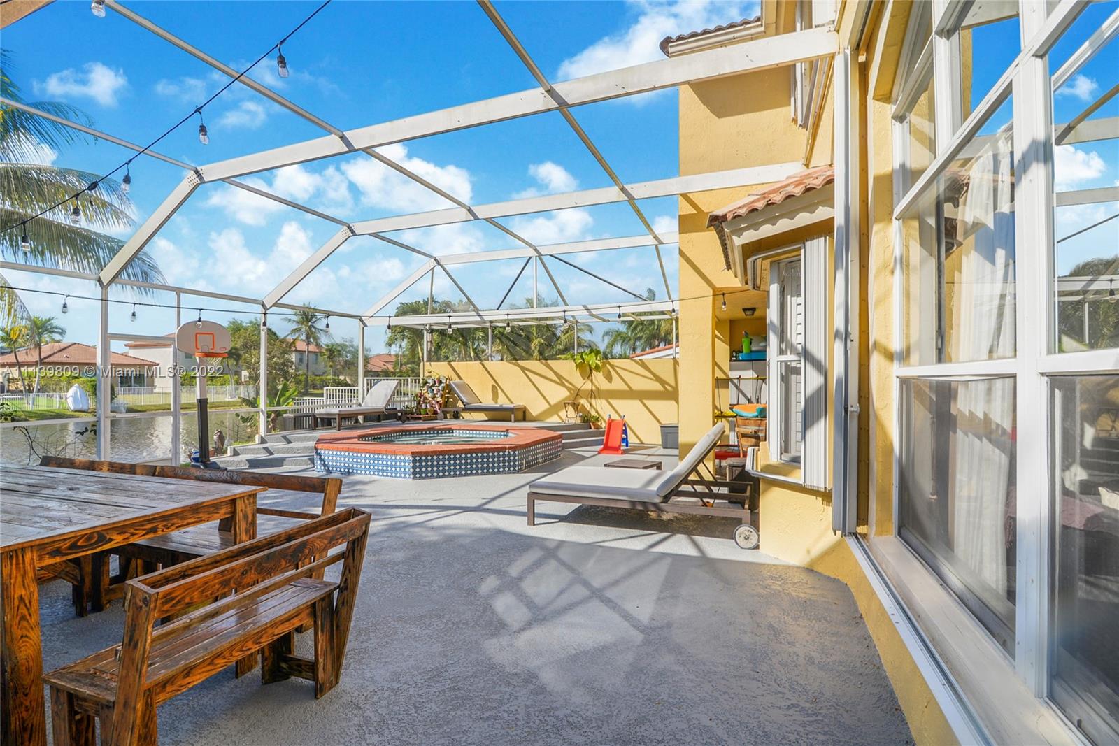 Brand-new tile roof! Enjoy the gorgeous setting on this excellent lakefront single-family home with 2-car garage, the 4th bedroom area is currently a loft/office area. Well cared for, many updates, peaceful lakefront, large enclosed screened patio with a large built-in whirlpool spa. Great neighborhood and schools, convenient to schools, parks, supermarkets, shops, medical offices, etc. Accordion panel protection in all windows, hurricane-grade garage door, newer A/C, water heater, nice SS appliance package. Low HOA fee includes base cable & internet.