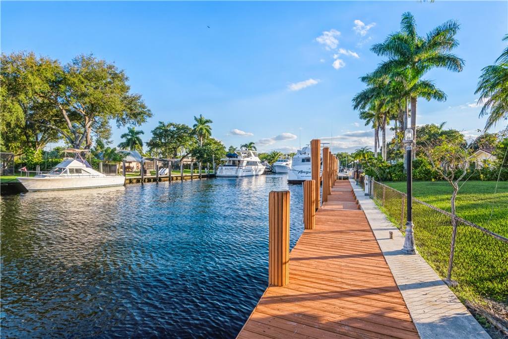 Unique, tropical hideaway with 130' of Ocean access waterfront on Wide, Deep canal by the New River. A safe haven-dockage for up to a 120 ft Yacht. Spacious, recently updated classic home features 3 bedrooms, 2 bathrooms, a huge covered patio with East facing water views! Large salt water pool with waterfall & fiber optics lighting system. An oversized 2 car garage, circular driveway to accommodate multiple vehicles plus. New kitchen cabinets with quartz tops. Spacious master features master bathroom addition (2000) his & hers walk-in closets, double vanities with sinks, jacuzzi tub, separate shower and polished marble flooring. New LED lighting through-out and more! Conveniently located near Downtown/Las Olas, Airport, Port Everglades, all major highways and the Beach.