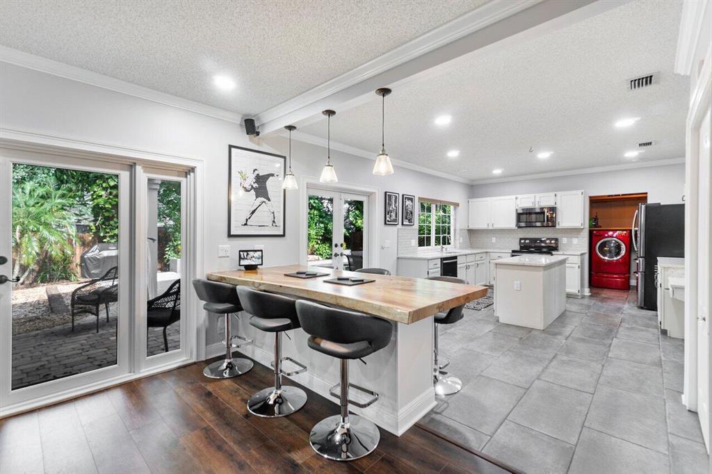 This is it! Your Dream Home has been beautifully renovated All windows, doors, and garage door are impact resistant, complete home back up generator AND water filtration system. This backyard has the WOW factor, perfect for entertaining. Private pool, cabana, fire pit, hardscaping, beautiful lush landscaping makes this the perfect oasis. No expense spared as you will see walking into house. Massive foyer with slate tile flooring, Wood durable vinyl flooring throughout house, carpet in bedrooms. Kitchen features quartz countertops, Samsung BSS appliances. First floor features den/flex space, formal dining, living rm, laundry, 1/2 bath. Walk upstairs to your primary suite & 3 bedrooms. Primary Bath travertine flooring, cast iron tub, huge shower, dream closet