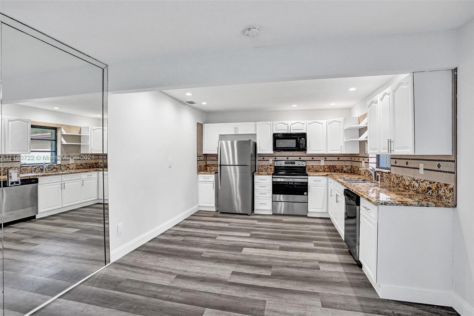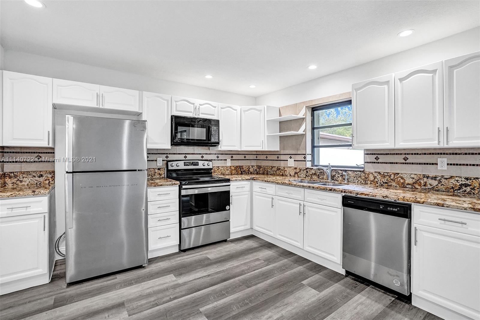 Spacious and updated 4 bedroom/3 bathroom home with an expansive, peaceful yard that backs the amazing Greynolds Park. This Fulford By the Sea home features new wood-like vinyl and tile floors, a beautiful kitchen with GRANITE counters, NEW SS APPLIANCES, recessed lighting, NEW light fixtures and fans, NEW bathroom vanities, large closets and a WALK-IN closet in the master bedroom, two mango trees, and complete hurricane shutters. The split-floorplan gives potential to convert one bedroom to an in-laws suite. IDEAL location in a quiet family-oriented neighborhood with great schools - walk to Greynolds Park (golf, volleyball, picnic, etc.) the Ancient Spanish Monastery, coffee shops and other stores; 5 min to Aventura Mall and I-95, less than 10 min to the beach.