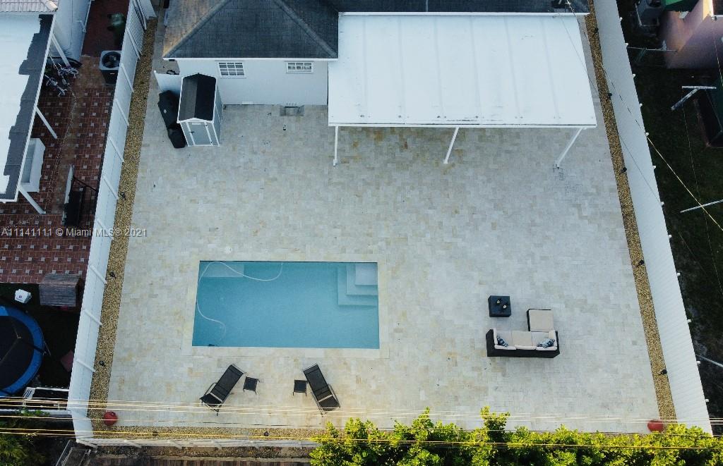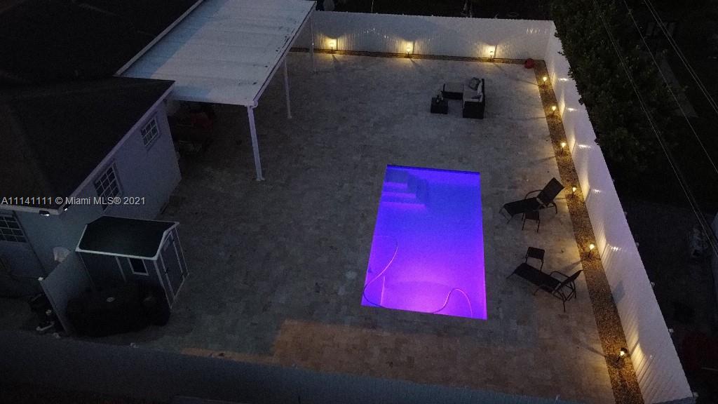 Beautiful single family home featuring 3 bedrooms, 2 bathrooms and a huge upgraded patio that included Travertine Marble flooring and a beautiful new Pool (2020). No detail has been left untouched in this house! Recently upgraded Kitchen and bathrooms with Quartz countertop and stainless steel appliances, Nest Thermostat, tankless water heater, washer/dryer, Impact windows & shutters. Fully fenced with remote controls and keypad for entry gate.