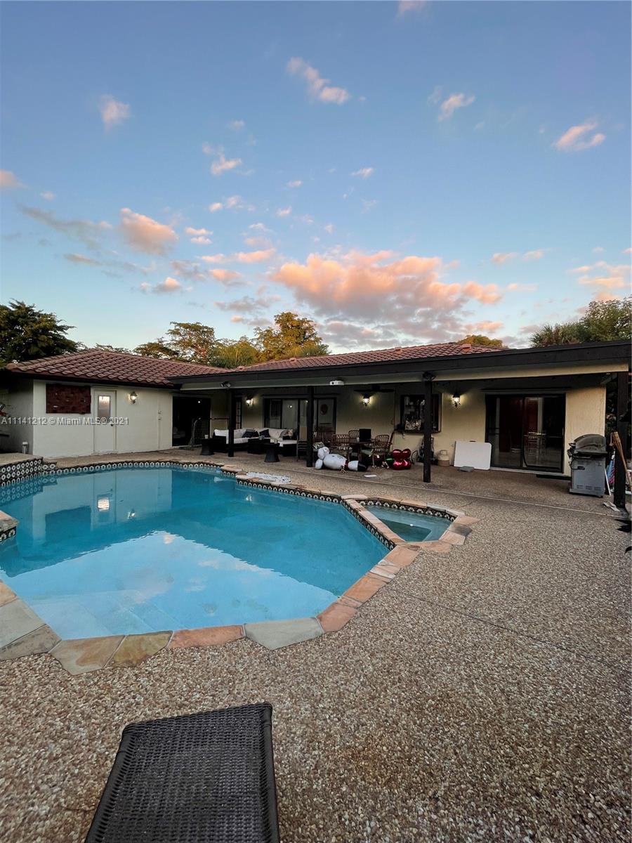 Spacious 1-story home with 4 bedrooms, 2 and half bathrooms and 2 car garage. The house has a stunning backyard with a pool and wood terrace, perfect for outdoor entertaining. The master has his and her sinks in the bathroom and huge walking closets. The house had renovations done with a new roof in 2015, new a/c unit in 2020, water heater, pool pump, garage door in 2019, and so much more! All windows have hurricane shutters. This is a wonderful opportunity to own a house in a fantastic location, excellent neighborhood with a great school zone. Refrigerator and stove are not included, a credit will be provided at closing.
