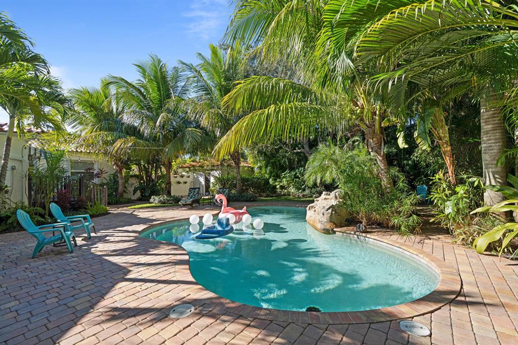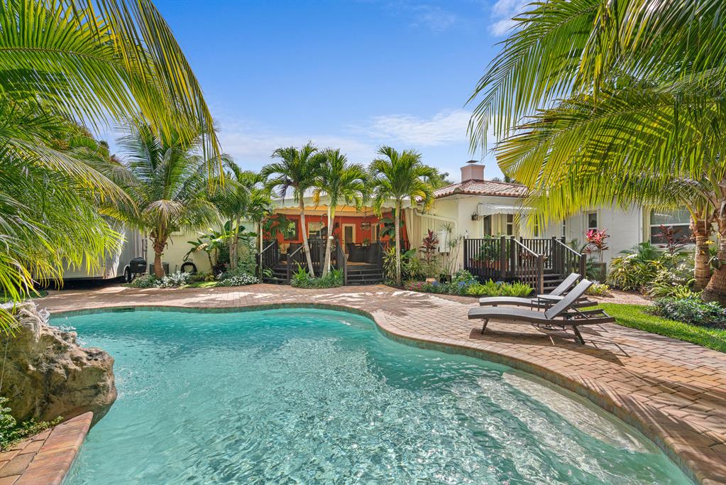 Gorgeous Mid-Century renovation on North Flagler Drive in Northwood Shores. The lot is 16,250 sq. ft. with 125 ft. on Flagler Drive completely landscaped into a Tropical Paradise. 3 bedrooms and 2 full baths with over 2400 sq. ft. of gross living area, including the fabulous covered loggia off of the kitchen. All impact glass and CBS construction, and updated throughout. Chefs kitchen w/gas appliances, formal living, and dining rooms, plus a family room/den. The new master suite has a built in closet system and new elegant bath. A split floor-plan with 2 guest bedrooms, laundry room, & guest bath. The backyard is amazing, fully landscaped to perfection, a large heated free-form pool, and fire-pit. No detail has been ignored, paver walkways, fenced, walled, and gated, w/ 1 car garage.