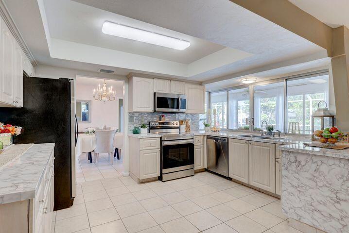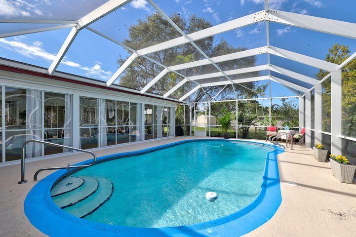 Perfect location!! Great 4 BR 2 Bth home on huge 14000+sf completely fenced lot. Over 2650 sf home has a split BR floor plan w/ formal LR & DR plus nice large Open Concept Kitchen/Family Room. All BR have NEW laminate floors. GREAT BONUS is the 400+ sf Florida Rm adjacent to the pool, Ideal for entertaining!! Storage Galore! Walk-in closets in bedrooms & more closets throughout. Stainless appliances, BRAND NEW, never used Stove & Microwave, the Lg Laundry Rm. has NEW Washer. Brand NEW AC & Ducts - NEW Tankless Water Heater - New Pool pump- All 2021. Hurricane panels for entire house. Lg 2 Car Garage w/ shelving, Lovely long driveway fits 5+cars. Ideally located on a quiet street Cul-de-Sac, in excellent neighborhood!! Near Publix, shops, schools & highways - Close to Everything!!