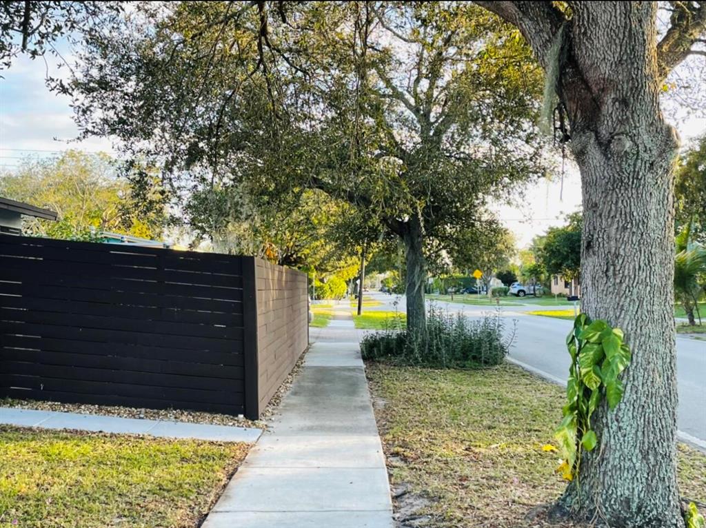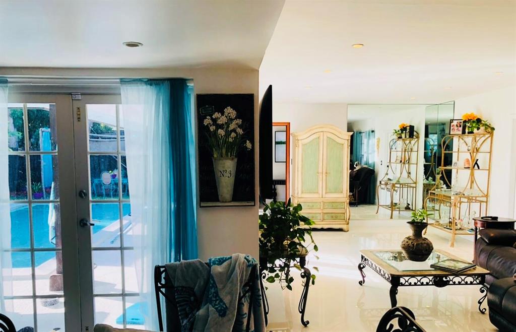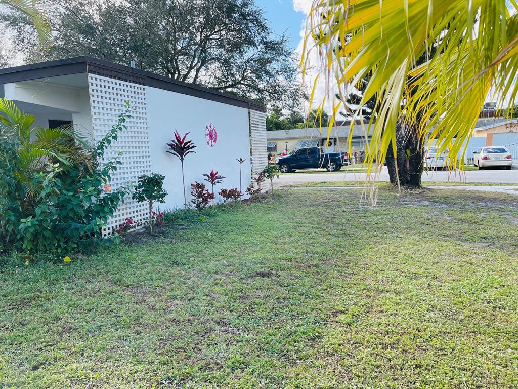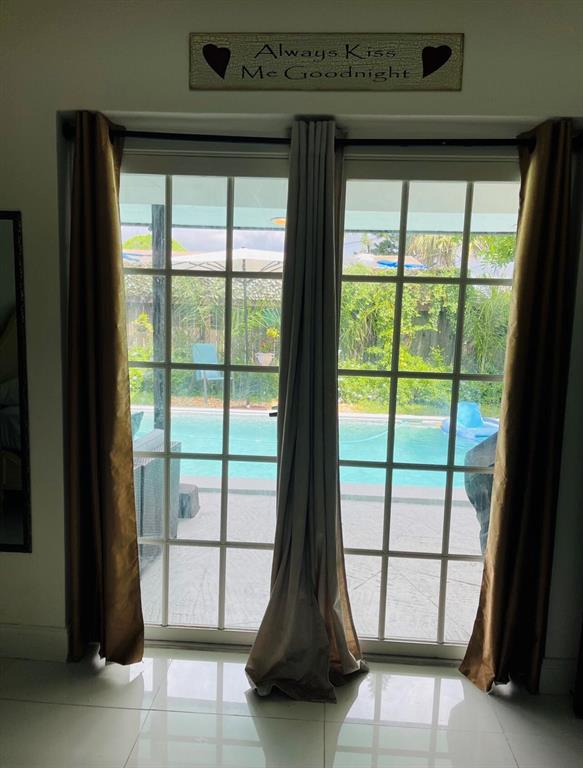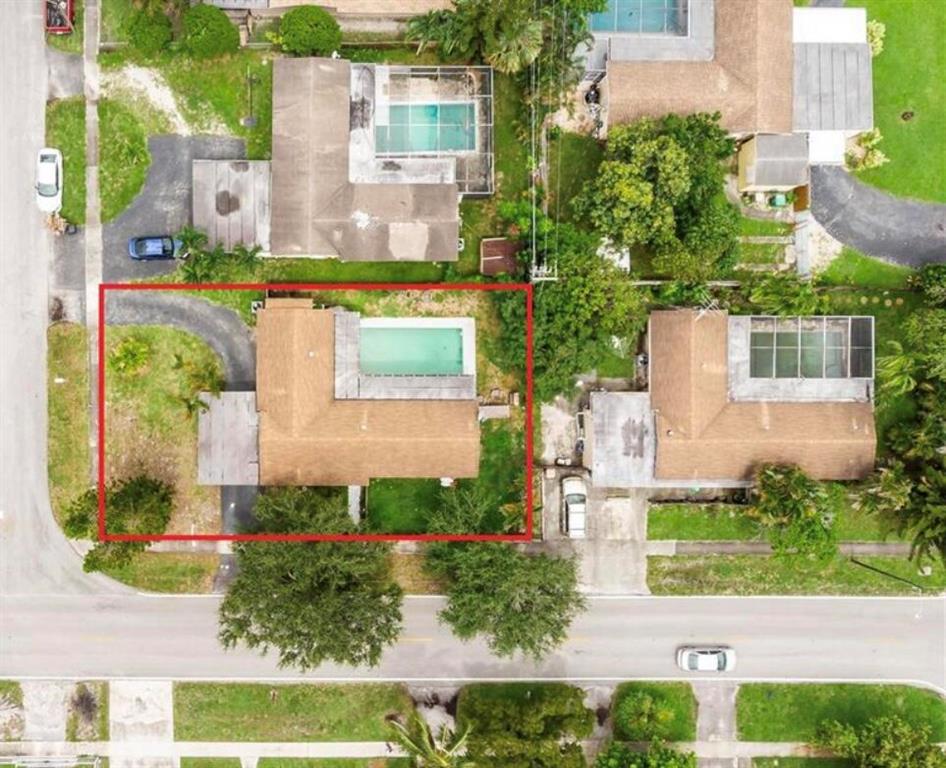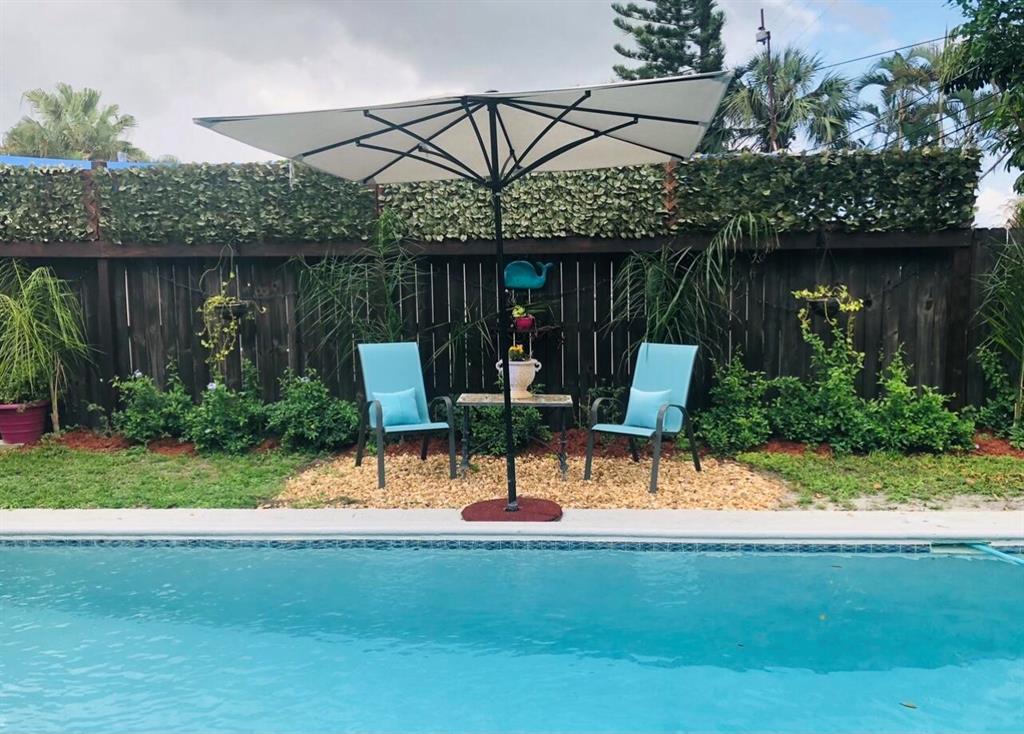 Luxurious Pool House on Covered Drivethrough Corner Lot featuring Open Kitchen / Dining / Living Split Bedroom Plan with Large Quartz Countertop, Deep Farm Sink, Elegant Recessed Lighting inside and poolside, Beautiful Bathrooms, 3 sets of French Doors showcasing Stunning Poolside Views from Both Bedrooms, Livingroom, Diningroom and Master Bath with an Amazing Flow from South Wing to East Wing. Self-cleaning pool vacuum, ping pong area, views of towering oaks, palm trees, bougainvillea, hibiscus, jasmine, crotons, bromeliads and more!!! Just off University and 33rd, close to Publix, Target, Restaurants. Ideal for modern living. Nightly laser stream poolside from Hard Rock Billion Dollar Guitar Hotel