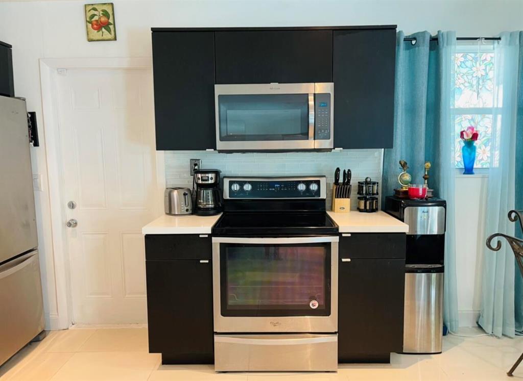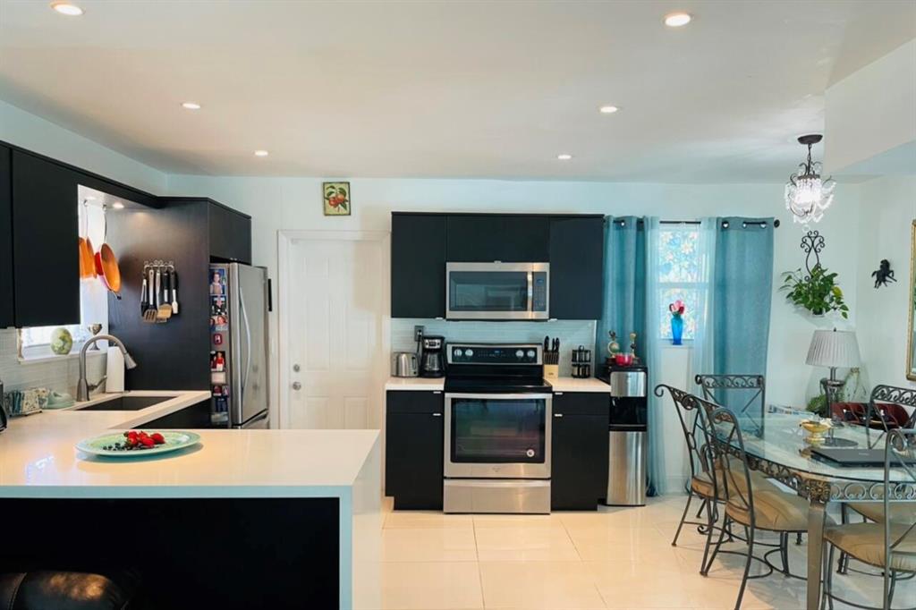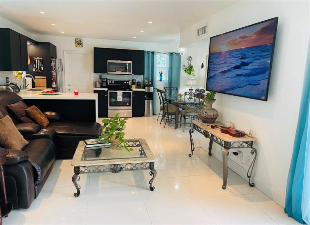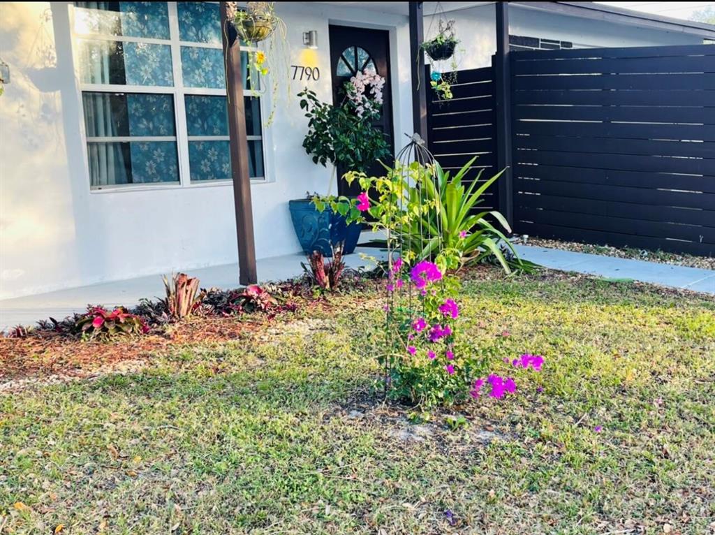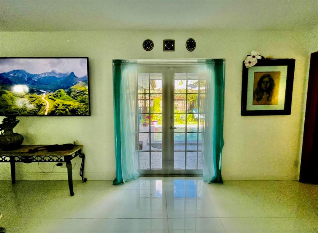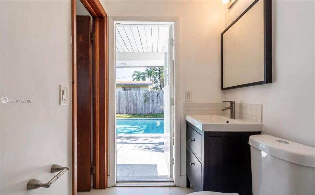 Luxurious Pool House on Covered Drivethrough Corner Lot featuring Open Kitchen / Dining / Living Split Bedroom Plan with Large Quartz Countertop, Deep Farm Sink, Elegant Recessed Lighting inside and poolside, Beautiful Bathrooms, 3 sets of French Doors showcasing Stunning Poolside Views from Both Bedrooms, Livingroom, Diningroom and Master Bath with an Amazing Flow from South Wing to East Wing. Self-cleaning pool vacuum, ping pong area, views of towering oaks, palm trees, bougainvillea, hibiscus, jasmine, crotons, bromeliads and more!!! Just off University and 33rd, close to Publix, Target, Restaurants. Ideal for modern living. Nightly laser stream poolside from Hard Rock Billion Dollar Guitar Hotel