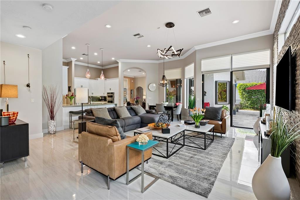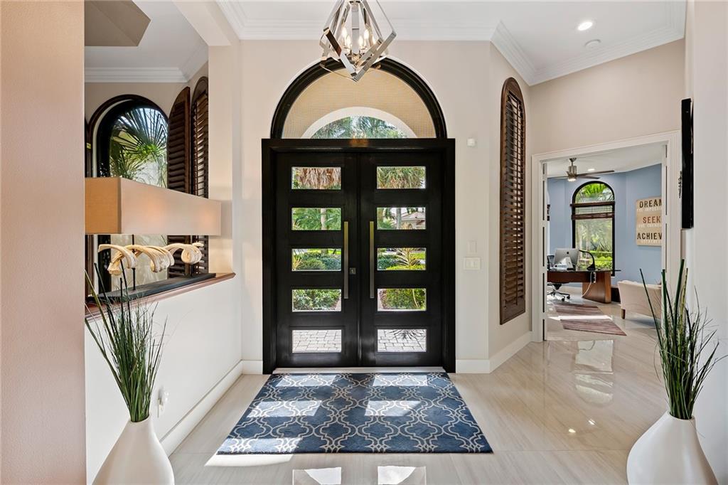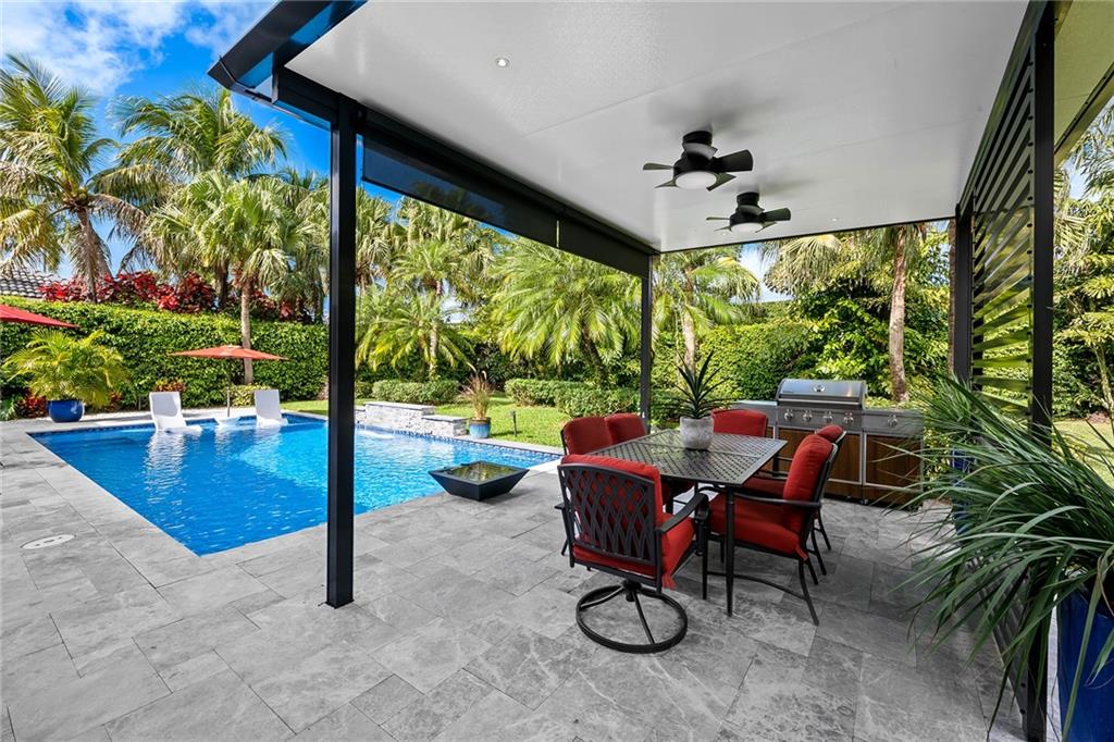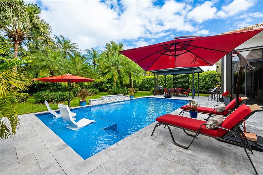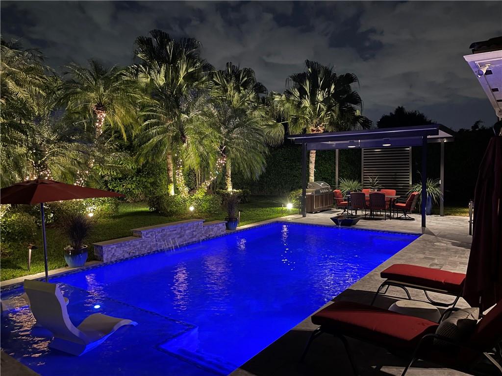 Must see 4 bedroom, 3 bath home which can easily become a 5 bedroom. As you enter the fabulous double doors you see straight out thru the glass to your own paradise. A beach entry pool with 2 waterfalls, a pergola, a large covered seating area & a huge grass yard for the dogs or swingset. The new open kitchen is white with an induction stove and a seated counter. New porcelain floors throughout and all 3 renovated bathrooms. Master suite looks at the pool area with impact double doors, a free standing bathtub and custom walk in closets. 2 bedrooms with adjoining bathroom and a 4th bedroom which can also be an office. Updated modern light fixtures throughout the home. Everything redone since 2019!!! Don't miss the opportunity to own in the exclusive gated community of Hawks Landing.