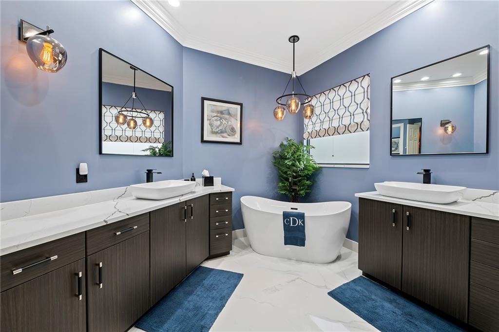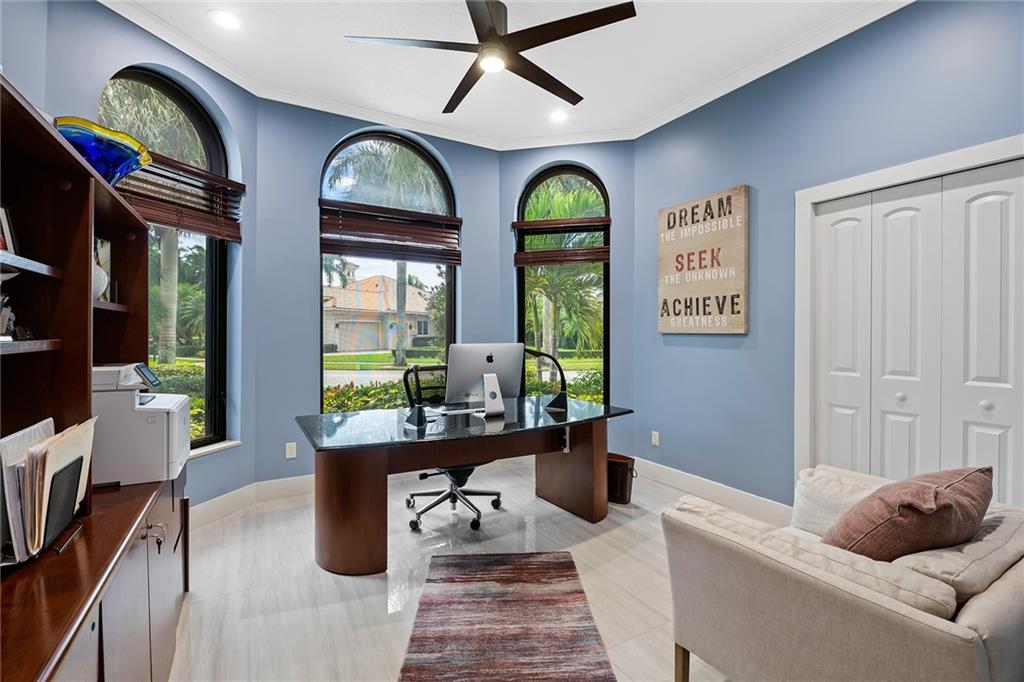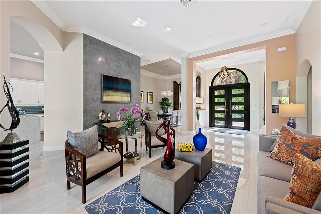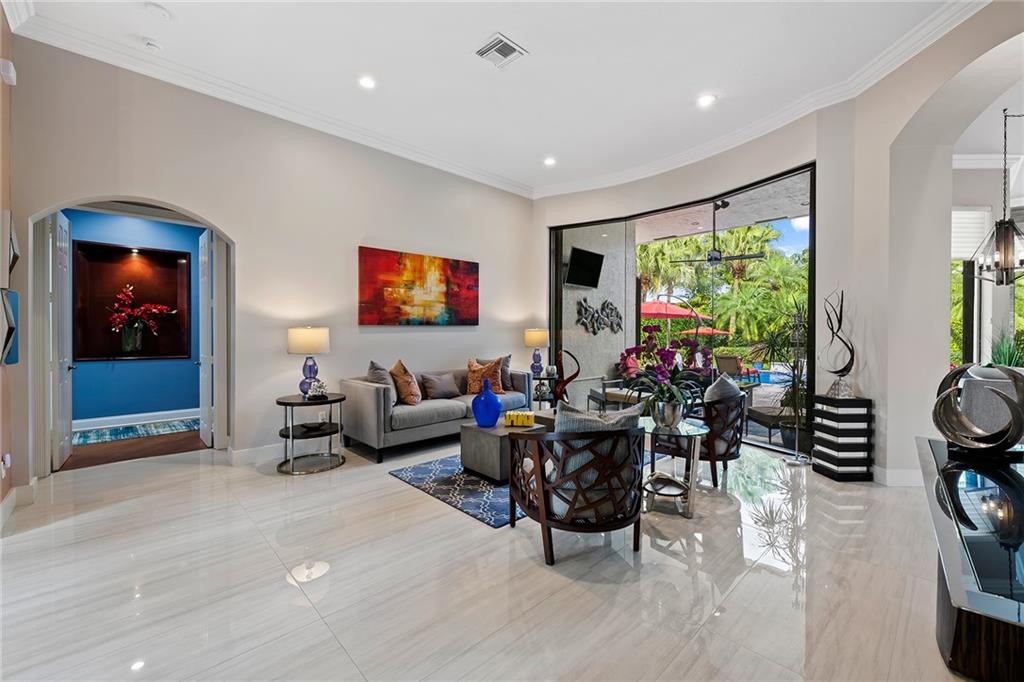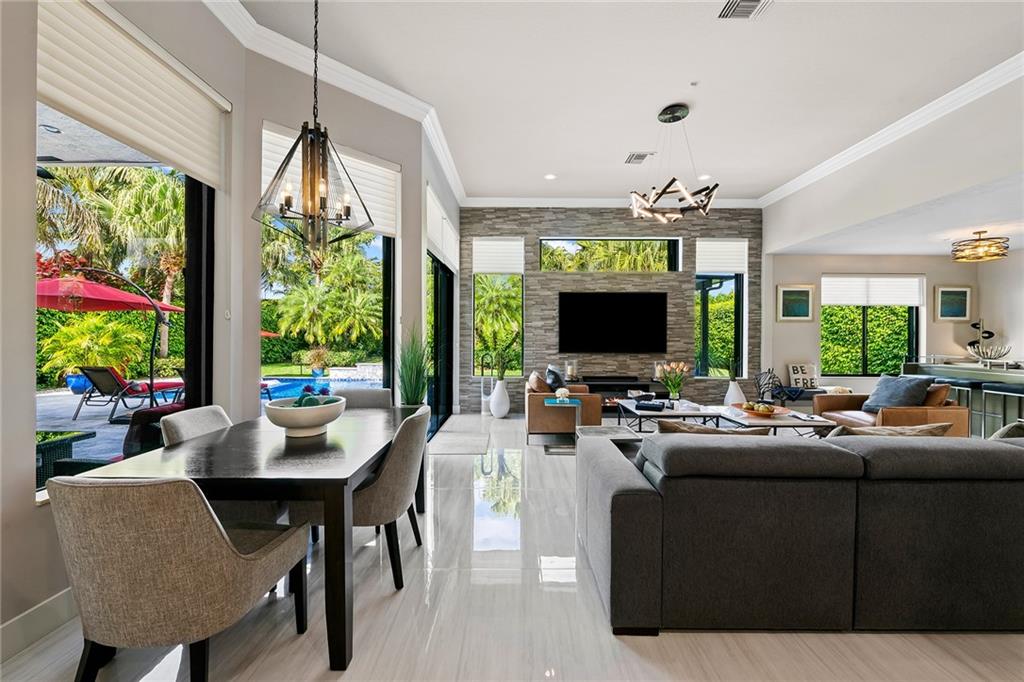 Must see 4 bedroom, 3 bath home which can easily become a 5 bedroom. As you enter the fabulous double doors you see straight out thru the glass to your own paradise. A beach entry pool with 2 waterfalls, a pergola, a large covered seating area & a huge grass yard for the dogs or swingset. The new open kitchen is white with an induction stove and a seated counter. New porcelain floors throughout and all 3 renovated bathrooms. Master suite looks at the pool area with impact double doors, a free standing bathtub and custom walk in closets. 2 bedrooms with adjoining bathroom and a 4th bedroom which can also be an office. Updated modern light fixtures throughout the home. Everything redone since 2019!!! Don't miss the opportunity to own in the exclusive gated community of Hawks Landing.