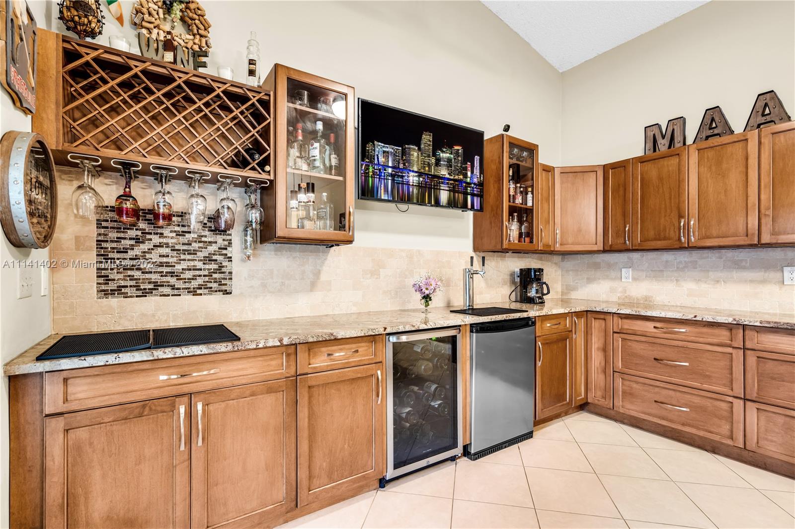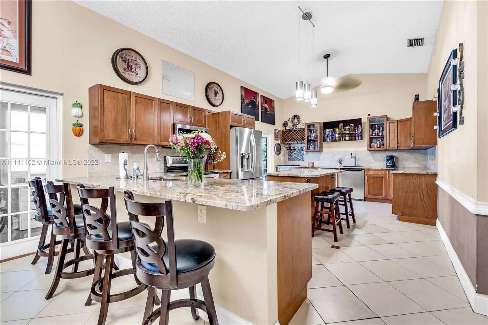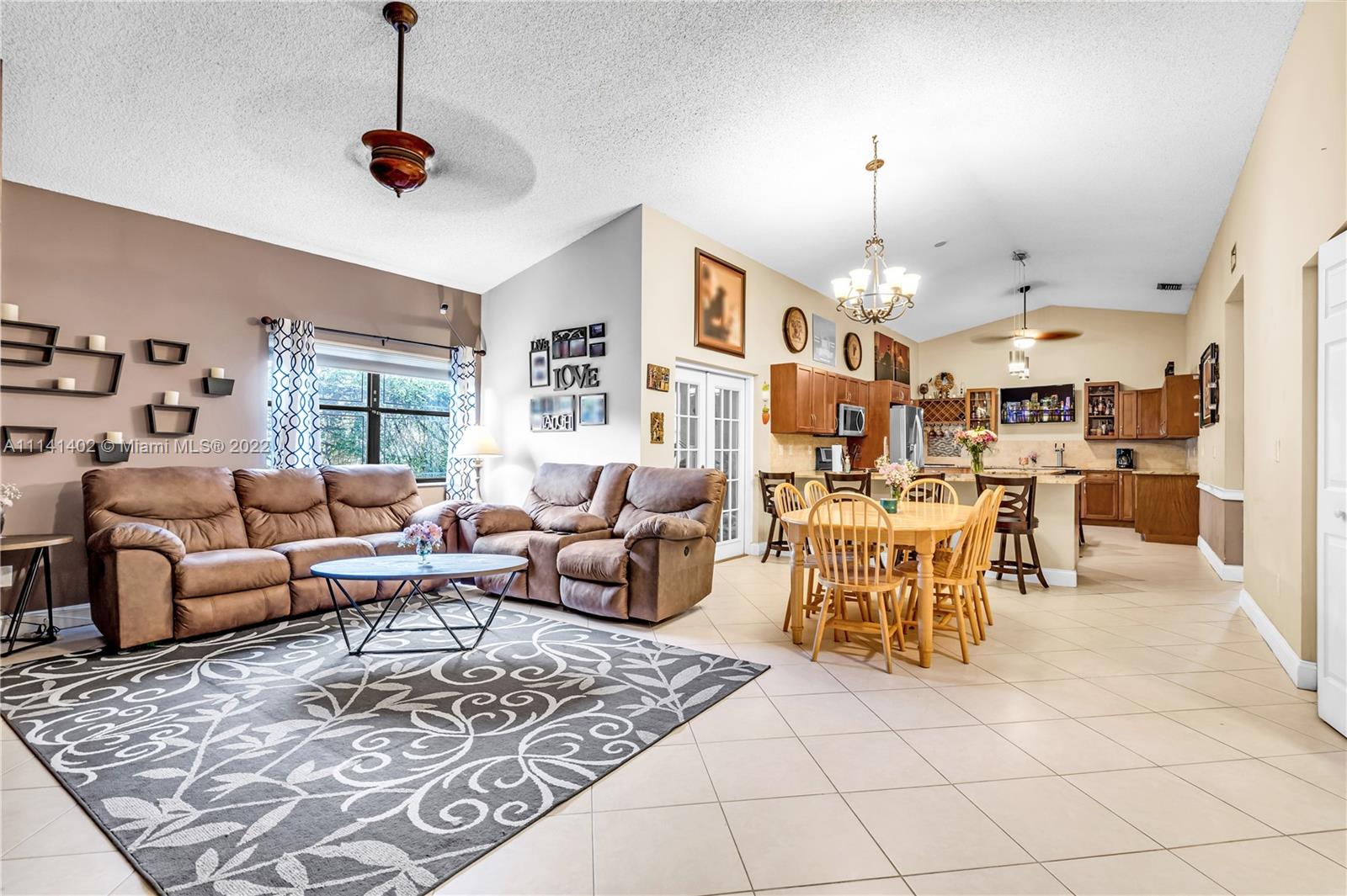 WELCOME TO PARADIDE DESIRABLE IVANHOE property 3 bedrooms 2 baths plus office POOL home. Beautiful open floor plan with vaulted ceilings. Remodeled open kitchen with island and wine cooler beer tap and fridge installed perfect to entertain. Plenty of French impact doors for natural light Walking distance to elementary school and many parks. Across from community pool and guest parking. Backyard with a wraparound terrace with a beautiful view to the pool and landscaping. Double car garage with an U Open safe in the garage floor, storage cabinet sand workbench Owners leaving additional tiles for floor kid's room, roof and back patio. Property total square footage under air 2,075. EASY TO SHOW !!