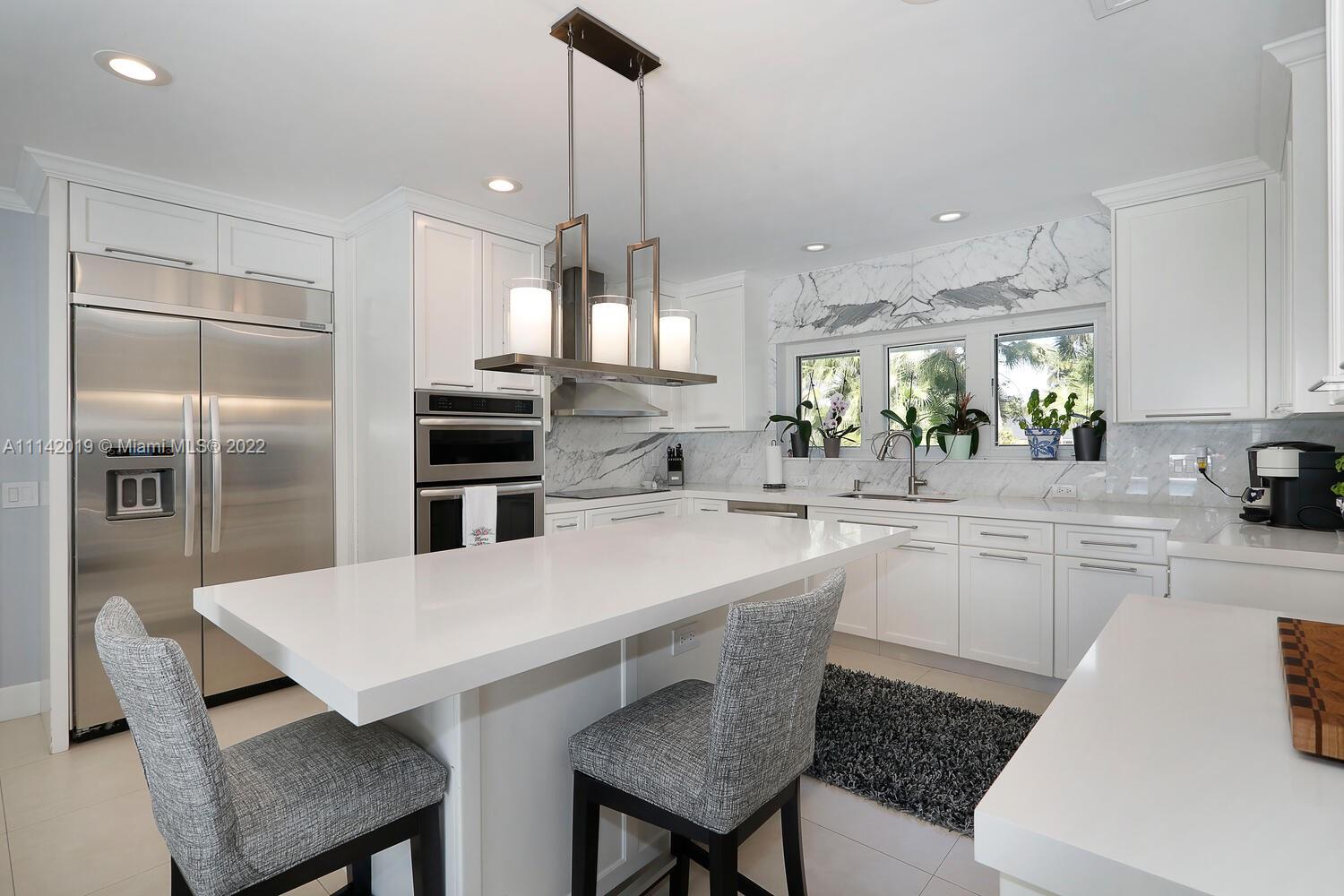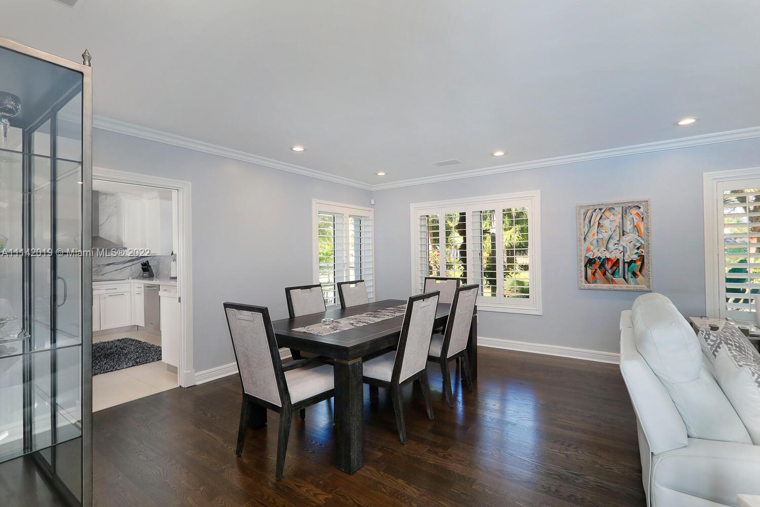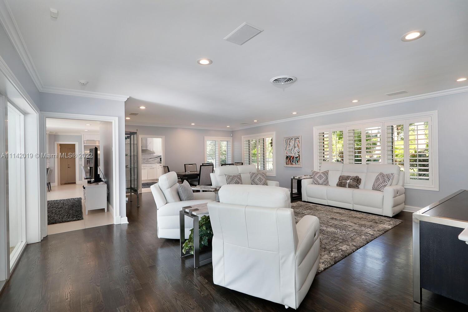 Exclusive Pine Bay Estates, rarely a home listed for sale in this small community in South Coral Gables. This mid-century ranch, sitting on a 3/4 acre corner lot has been meticulously updated to today's standard of living. 4 bedroom and 3 baths with complete hurricane protection including newly installed high impact glass windows and doors. Total Sonos sound package provides entertainment inside and out. The newly resurfaced salt water swimming pool has a Diamond Bright interior. Set way back off the street, the newly done circular driveway was paved with brick pavers. The huge backyard can be enjoyed through walls of glass or by using the large entertaining screened in porch next to the pool. The screen panels can be raising or lowered electronically with a remote. Enjoy the privacy!