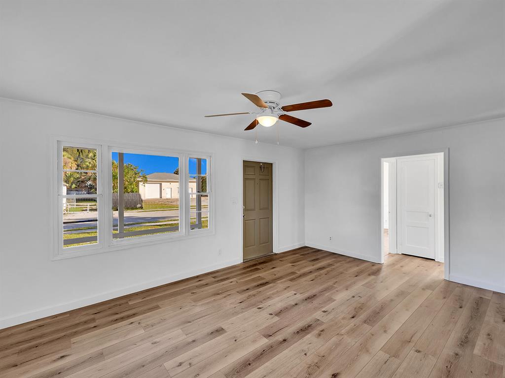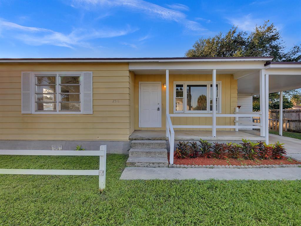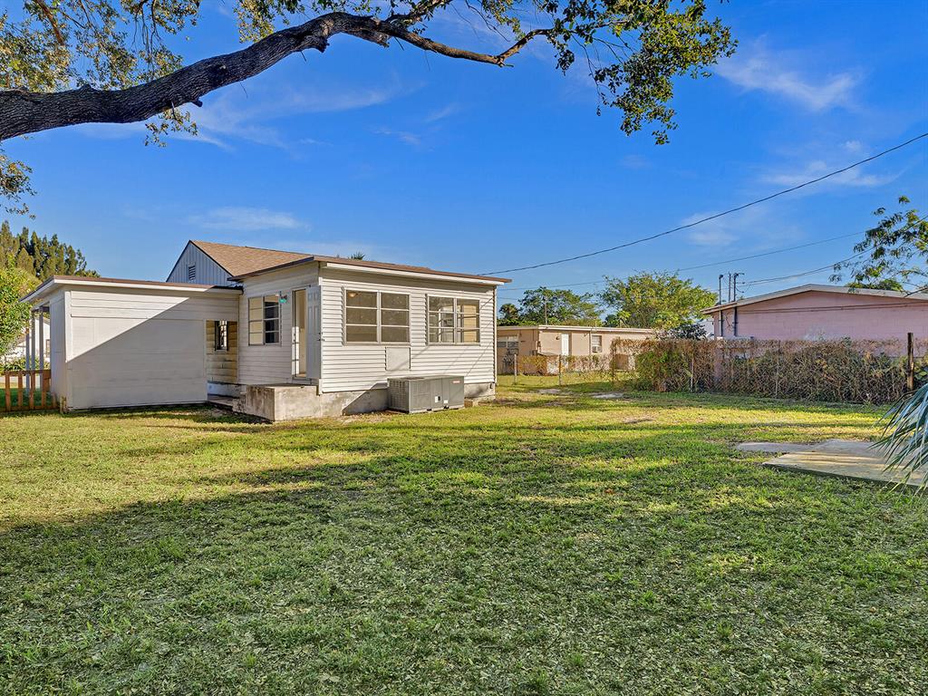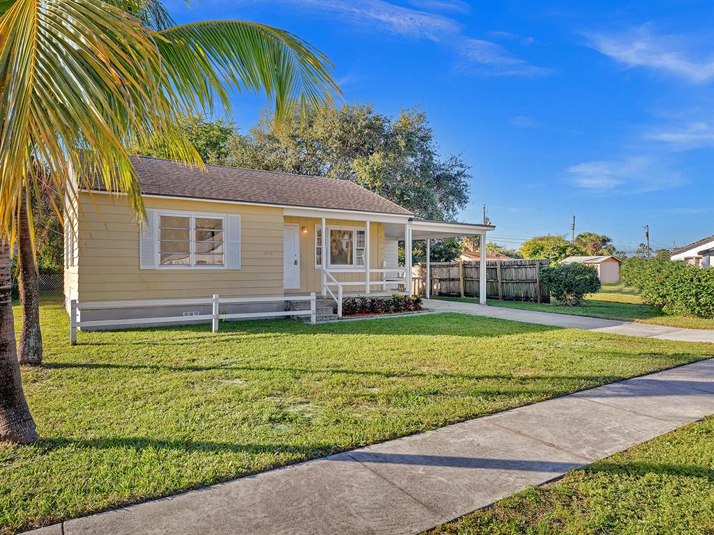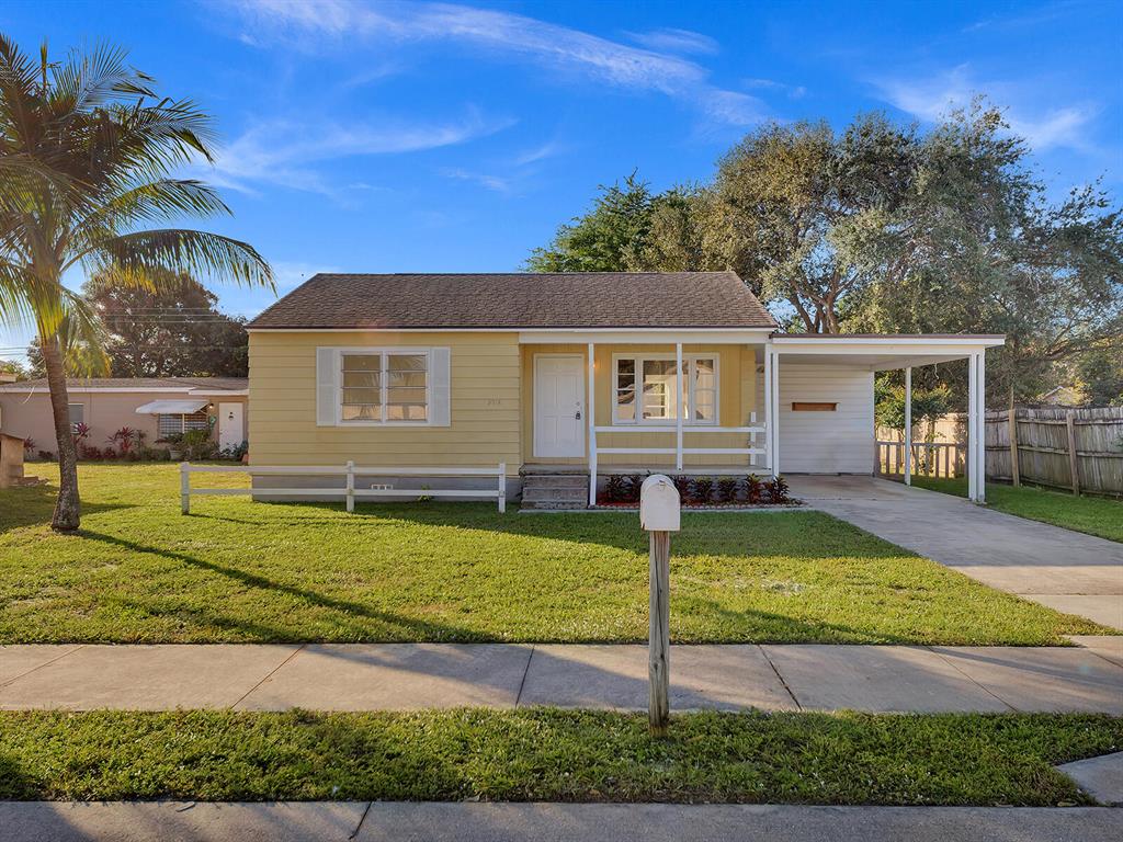 This adorable 2 bdr/1 bath Cottage home is updated throughout with new laminate flooring, new kitchen cabinets & gorgeous countertops. Large living space in rear of home that can be a great office or converted to a 3rd bedroom & 2 nd bath. Lots of windows make this home light & bright. Huge yard, partially fenced with plenty of trees for shade & room for a pool. Carport & large storage room to add a washer/dryer. Roof 5 years old, Water Heater 2014. Great investment opportunity! No governing bodies, can be rented right away. Fantastic location, just minutes to Downtown West Palm Beach, 95, shops and all the new restaurants. Charming home in the perfect spot!