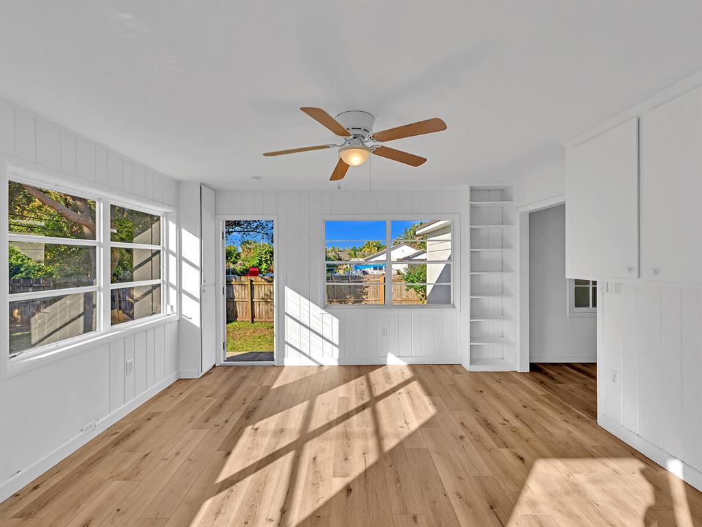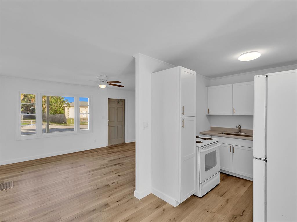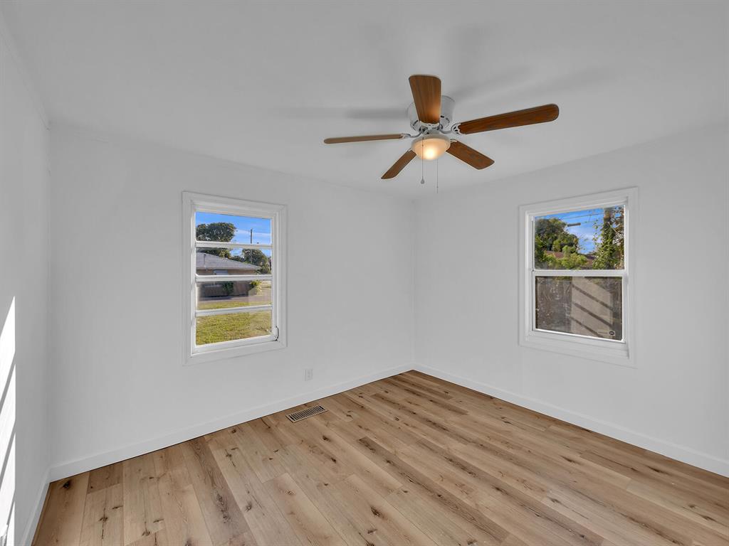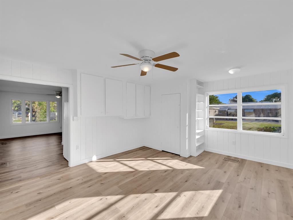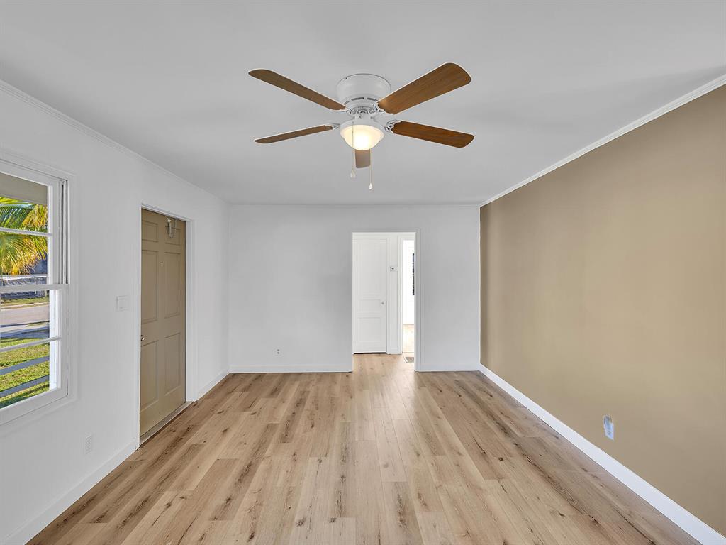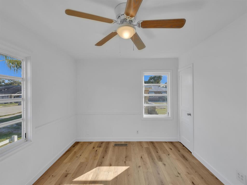 This adorable 2 bdr/1 bath Cottage home is updated throughout with new laminate flooring, new kitchen cabinets & gorgeous countertops. Large living space in rear of home that can be a great office or converted to a 3rd bedroom & 2 nd bath. Lots of windows make this home light & bright. Huge yard, partially fenced with plenty of trees for shade & room for a pool. Carport & large storage room to add a washer/dryer. Roof 5 years old, Water Heater 2014. Great investment opportunity! No governing bodies, can be rented right away. Fantastic location, just minutes to Downtown West Palm Beach, 95, shops and all the new restaurants. Charming home in the perfect spot!