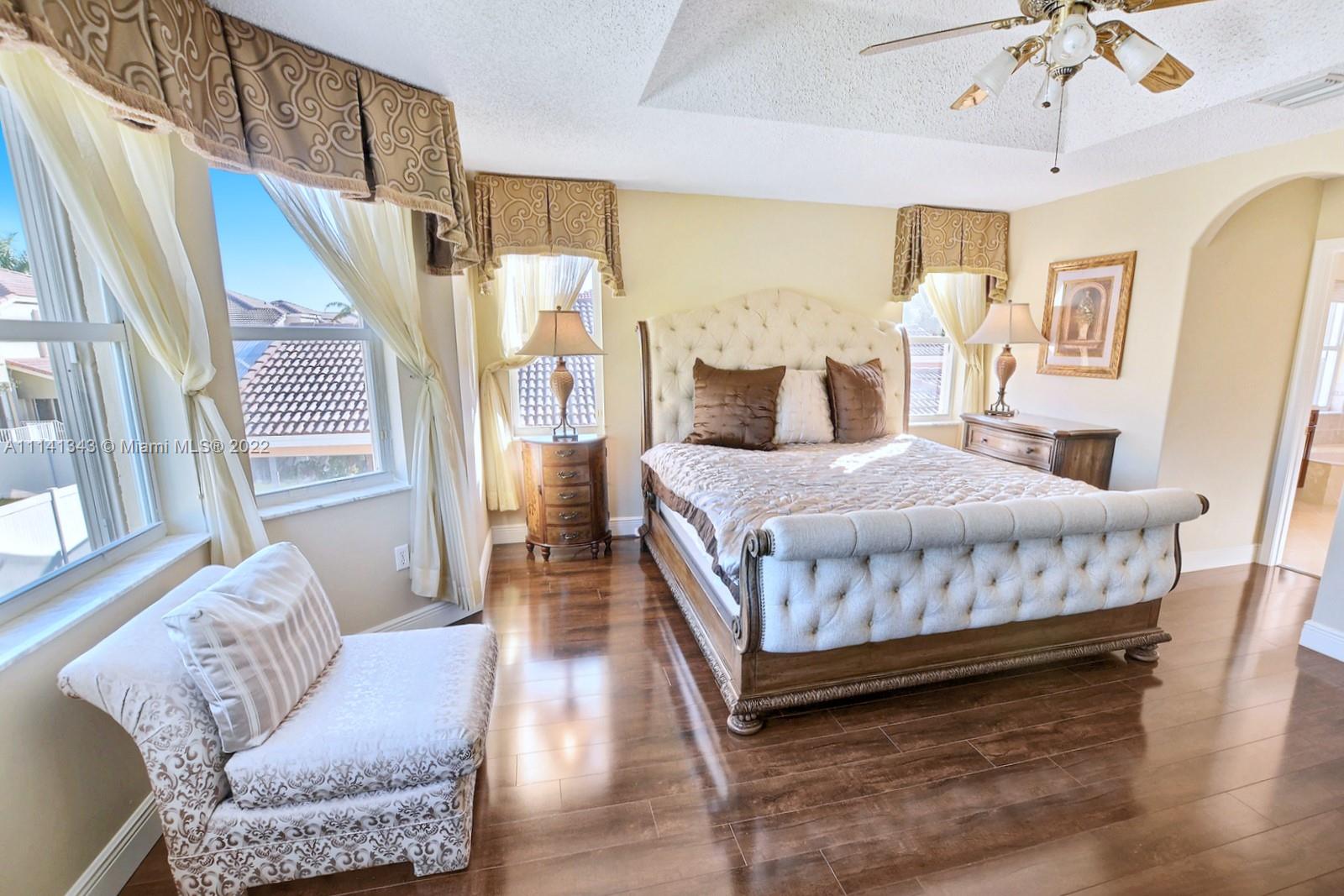 STUNNING 3 BED, 2.5 BATH TWO STORY HOME LOCATED IN THE SOUGHT AFTER RIVIERA ISLES COMMUNITY. THE SPACIOUS KITCHEN OFFERS STAINED WOODEN CABINETRY WITH A STYLISH BACKSPLASH, A LARGE CENTER ISLAND WITH A PREP SINK, AND BREAKFAST NOOK OVERLOOKING THE BACKYARD. THE FABULOUS OVERSIZED PRIMARY SUITE INCLUDES A LOUNGING AREA, BAY WINDOWS, TRAY CEILING DESIGN, AND ENSUITE BATHROOM WITH DOUBLE VANITIES, SOAKING TUB AND A GLASS ENCLOSED SHOWER. TILE FLOOR DOWNSTAIRS & LUXURIOUS WOOD FLOORS ON 2ND LEVEL. RELAX IN YOUR FENCED BACKYARD W PLENTY OF SPACE FOR A POOL. ACCORDION SHUTTERS & 2 CAR GARAGE. RIVIERA ISLES IS A PRIVATE GATED COMMUNITY BUILT AROUND A 225-ACRE LAKE, W 24/7 MANNED GATES RESORT STYLE LAGOON INSPIRED POOL, GYM, TENNIS & BASKETBALL COURTS, COMMUNITY PLAYGROUNDS, LAKE & PIER.