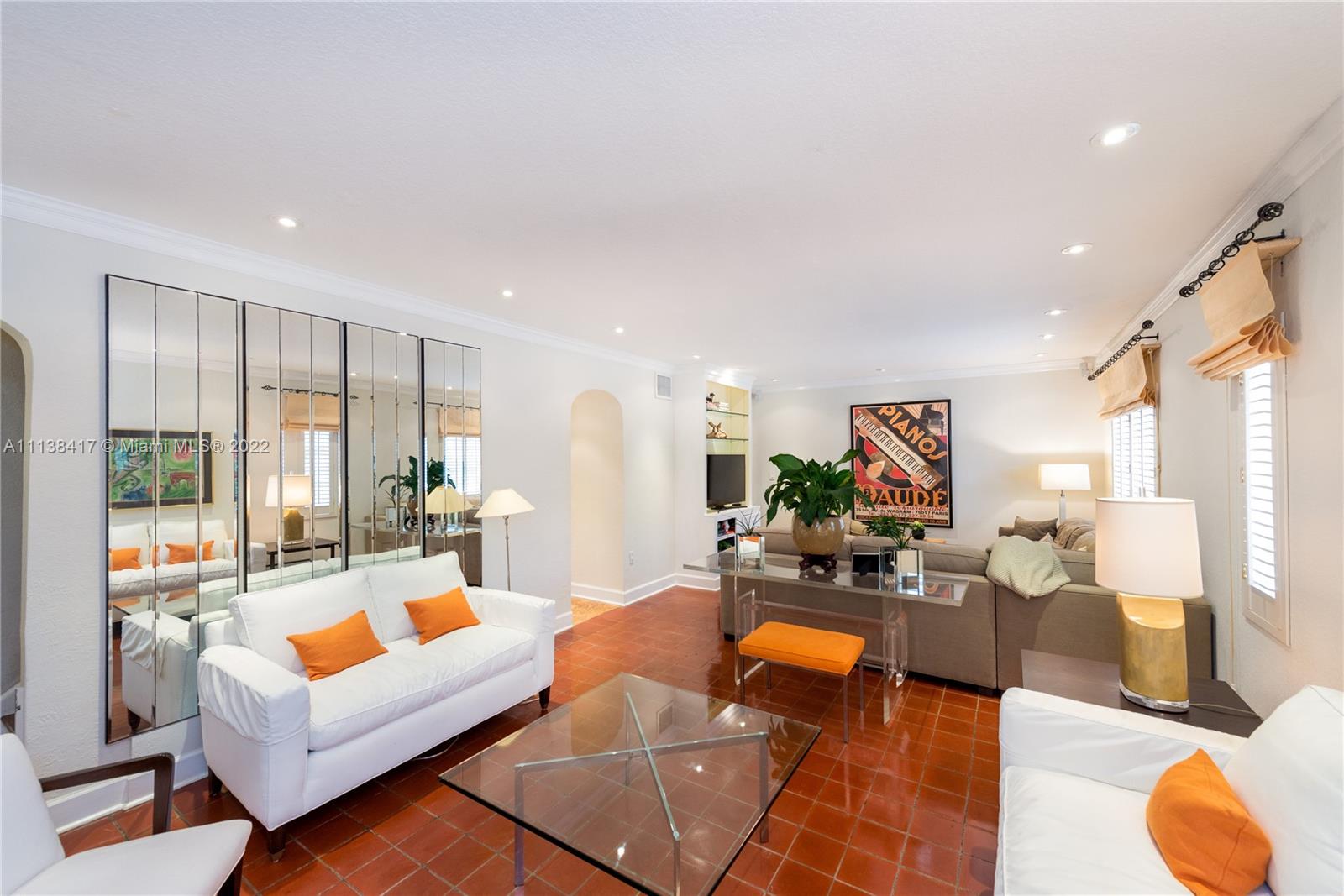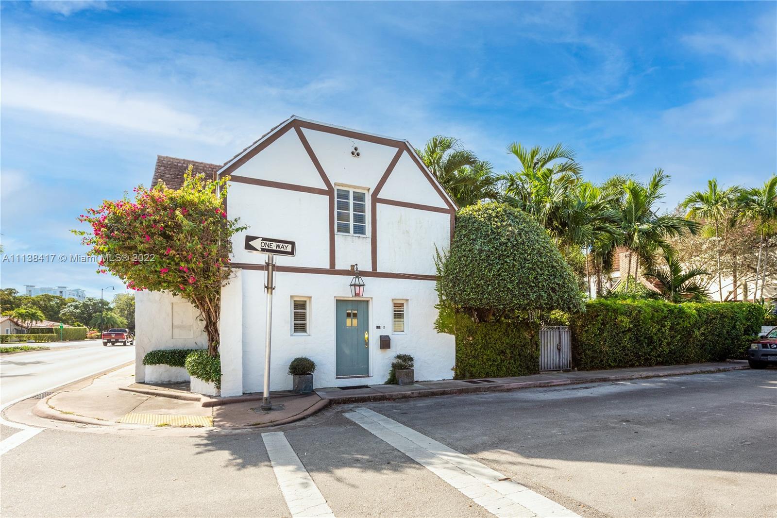 New Listing! Charming townhome in the Historic French Normandy Village. Located on a cul de sac just off LeJeune Road, N of Bird, this adorable 1925 home has been meticulously renovated. Foyer entry leads to LR with a high ceiling, crown moldings, a fireplace, and a glazed brick floor. The formal DR has a French door to a magical garden with tropical plantings and winding paths. Qwners purchased an extra yard that was platted for another townhome and now have room to add a garage with floor above or pool. Downstairs near the updated kitchen are a den and half bath. Upstairs are 2 spacious master bedrooms each with renovated baths, large closets, & built-in bookcases. Impact windows. 1842 Adj.sq.ft. FIRM PRICE. Truly a special home with a romantic, fairy tale ambiance. No association fee