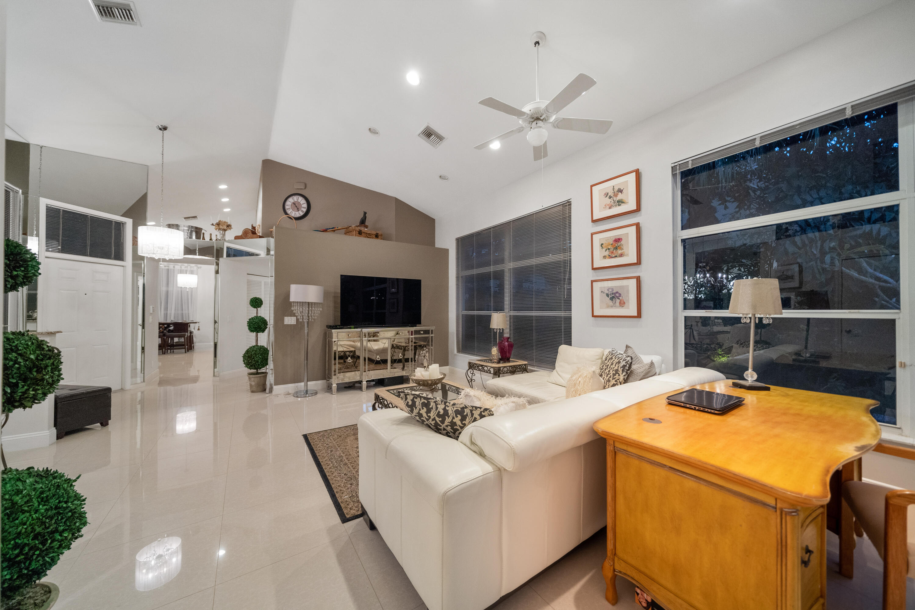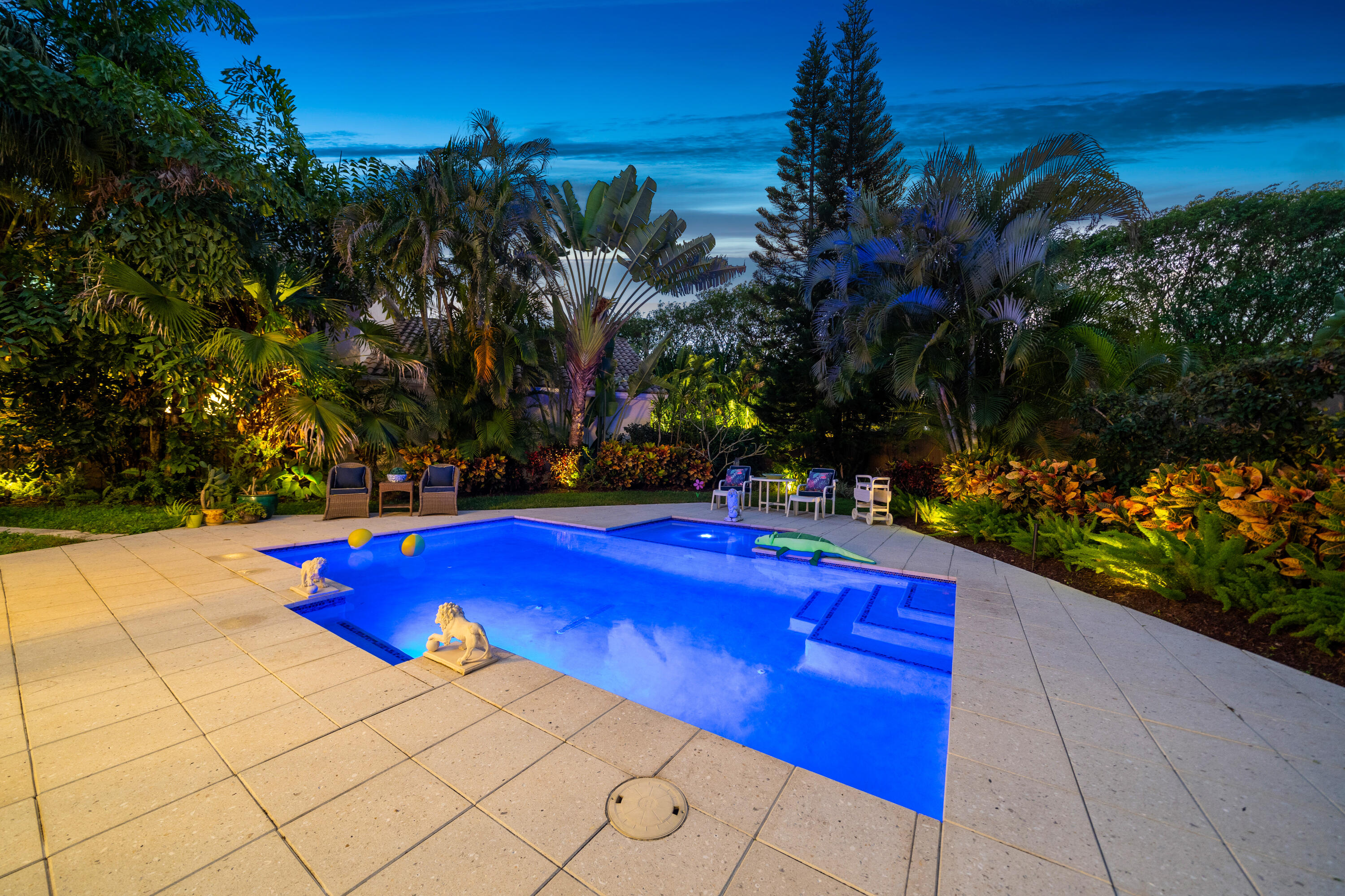 SOLAR POWERED TOTALLY RENOVATED HOME IN PRISTINE CONDITION IN A HIGHLY SOUGHT AFTER, PRESTIGIOUS PRIVATE CLUB* HOME BOASTS AN OVER SIZED PRIVATE TROPICAL SETTING WITH RECENTLY INSTALLED EXPANSIVE PAVED PATIO & LARGE HEATED SALT WATER POOL WITH COLORFUL SUNDECK, WATERFALL, JETS, PROVIDING VALUABLE OUTDOOR SPACE FOR ENTERTAINING* ORGANIC BANANAS & AVOCADO TREE* LIGHT & BRIGHT INTERIOR FEATURES 20'' PORCELAIN TILE, NEW BATHROOMS, THOMASVILLE HARD WOOD KITCHEN, SS APPLIANCES, GRANITE COUNTER TOPS, 2 PRIMARY BEDROOM SUITES WITH WALK IN CLOSETS* NEW ROOF & INTERIOR, HURRICANE SHUTTERS 2020, NEW EXTERIOR PAINT, GATE & FENCES, TANKLESS WATER HEATER, SOLAR PANELS 2021 ($50 G VALUE) + ALL CUSTOM IMPACT DOORS. BEAUTIFUL CURB APPEAL* ''A'' RATED SCHOOLS*LENNOX AC. ROOM MEASUREMENTS APPROXIMATE.
