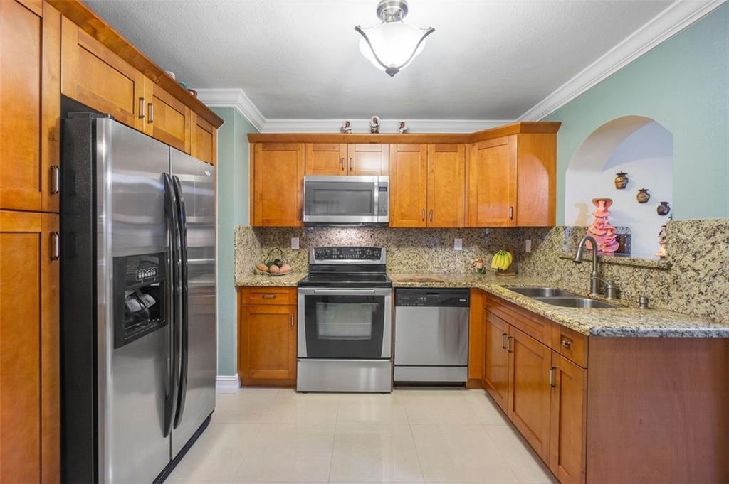 THIS IS IT... an AMAZING REMODELED 3-bedroom, 2.5-bathroom home in MOVE-IN READY condition! WELCOME HOME to a BEAUTIFUL TROPICAL LANDSCAPED front with a large driveway, and a SCREENED FRONT PORCH. As you enter, you will say WOW! This IMMACULATE HOME shows like a model and features TRAVERTINE TILE FLOORS, CROWN MOLDING, RECESSED LIGHTING and GOURMET GRANITE KITCHEN w/ S/S APPLIANCES! There is a HUGE dining room off the kitchen, INTERIOR LAUNDRY, and BOTH BATHROOMS are nicely REMODELED too. The 3rd bedroom has no closet, and can also be used as an OFFICE or PLAYROOM. And wait until you see the BACKYARD... great for entertaining, the PAVER PATIO wraps around the entire back of the house. There is also a permanent STORAGE building. NO HOA and you will LOVE THE NEIGHBORHOOD, hurry on this one!