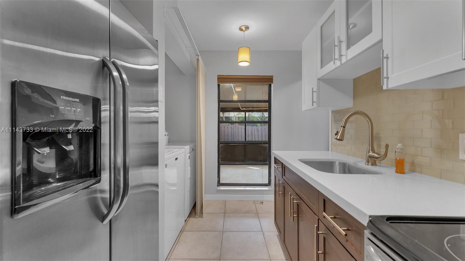 This beautiful 2 bedroom, 1.5 bathroom villa located in the East Lakes community is waiting for you, in the heart of a charming neighborhood! The home's unique design boasts a giant screened in patio, full size washer/dryer in the kitchen and huge closets in each room. The owner's attention to detail has made it so your buyers can pack their belongings and move right in! It has been well maintained & cared for. With 2 designated parking spaces and plenty of guest parking, this community is quiet, peaceful and well kept, w/a low maintenance fee that includes a pool & amenities!! Get ready to enjoy your time outside on the screened patio and private backyard. This home is conveniently located near the CB Smith Park, Pembroke Pines Mall, eateries, and schools. This Villa is one you must see!
