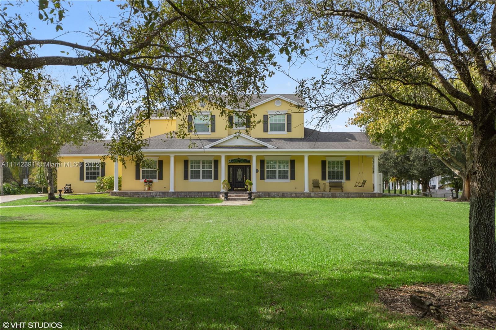 Welcome to Country Acre! A piece of South Florida city life in the middle of horse country surrounded by peace and tranquility. This 2001 custom-built home situated on 1+ acre features 4 bedrooms and 3 baths surrounded by mature, lush landscaping. This home includes several new renovations that includes circular driveway, front and back porches and walkways around the home in a beautiful paver design; two retractable lighted awnings on back patio providing an inviting atmosphere for entertaining while overlooking the pond; a Jack n’ Jill 2nd floor bathroom as well as all new carpeting on the 2nd floor. Interior, garage fresh paint; dishwasher, refrigerator, and more. Fully equipped with hurricane impact windows as well as French doors. This lovely home is move-in ready and won’t last long.