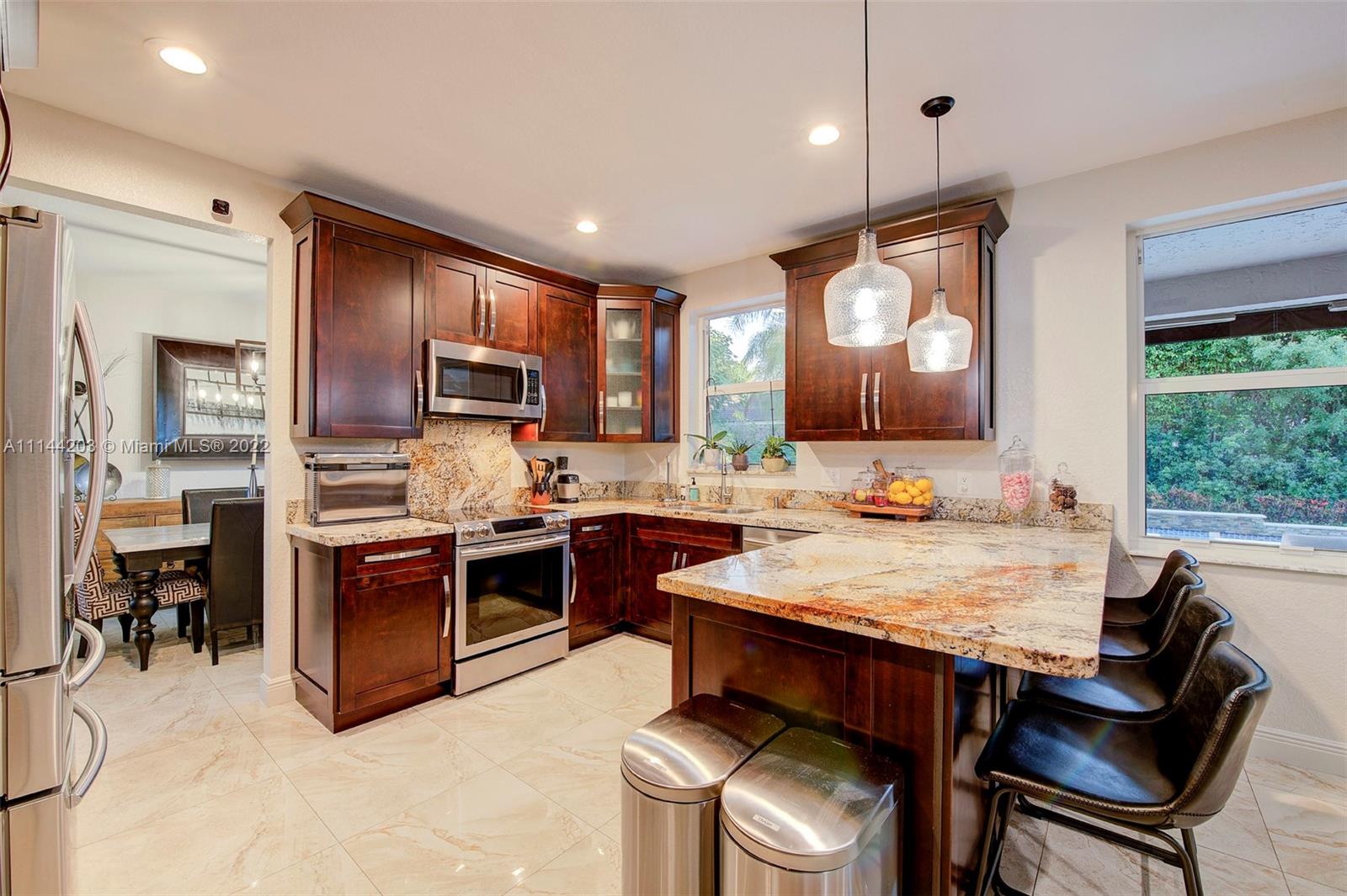If home is where the heart is then welcome to true love. Fall in love with this beautiful 5 bed, 3 ½ bath, 2 car garage paradise located in the highly sought after Savanna in Weston. Once you walk through the tasteful double front doors you’ll see a home ready to be a haven with a kitchen recently updated with stainless steel Samsung appliances, Italian style custom cabinetry, and exotic marble countertops. Whether you are spending time within the impeccably updated home or sunbathing in the large private pool in the back, your family will have everything they need including the security of high impact windows and extensive updates & upgrades throughout. As you leave Savanna you'll find it's conveniently located near A+ schools, highways, and all major shopping, malls, and restaurants.