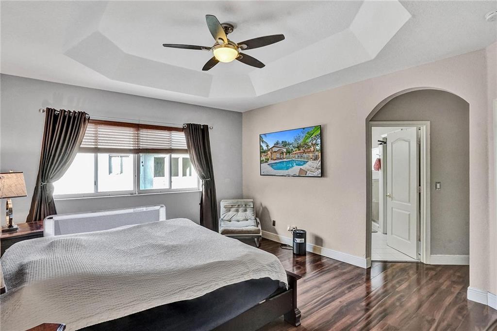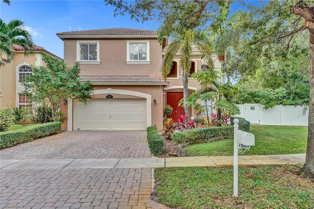 HOME CONTENTMENT! 4 Bedroom 2.5 bathroom pool home in lovely condition in Monarch Lakes. Corner property, fenced yard, family ready! White kitchen with hard surface countertops, stainless steel appliances, breakfast room all open to large family room. Formal living and dining room. Superb family floor plan. All bedrooms are on the second floor, all are large with good closet space. Lovely laminate flooring throughout the second story. Oversized first floor half bath and utility room with extra area for storage. Private pool area, huge deck, plus a separate area perfect for pets. All fenced. Two car garage plus paver driveway.