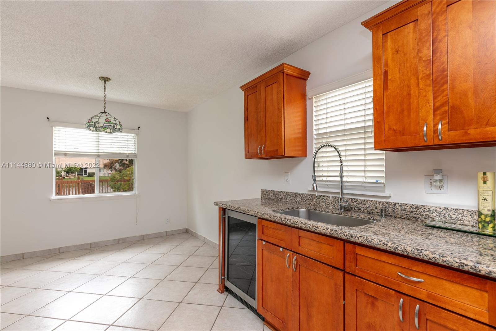 Beautiful 3/2 single-family home with lake view in Villages of Renaissance. Huge patio area with built-in wood deck ready for BBQ and more. Easy access to Florida's turnpike and I-75. Tile flooring throughout with laminate flooring in bedroom areas. The garage is converted and can be used as a gym or home office. The property has been only owner-occupied and has been kept in excellent condition. The location is 1/4 mile from the city center and CB Smith Park, Miramar police headquarters, Florida International University, and Broward College. Call us for more information.
