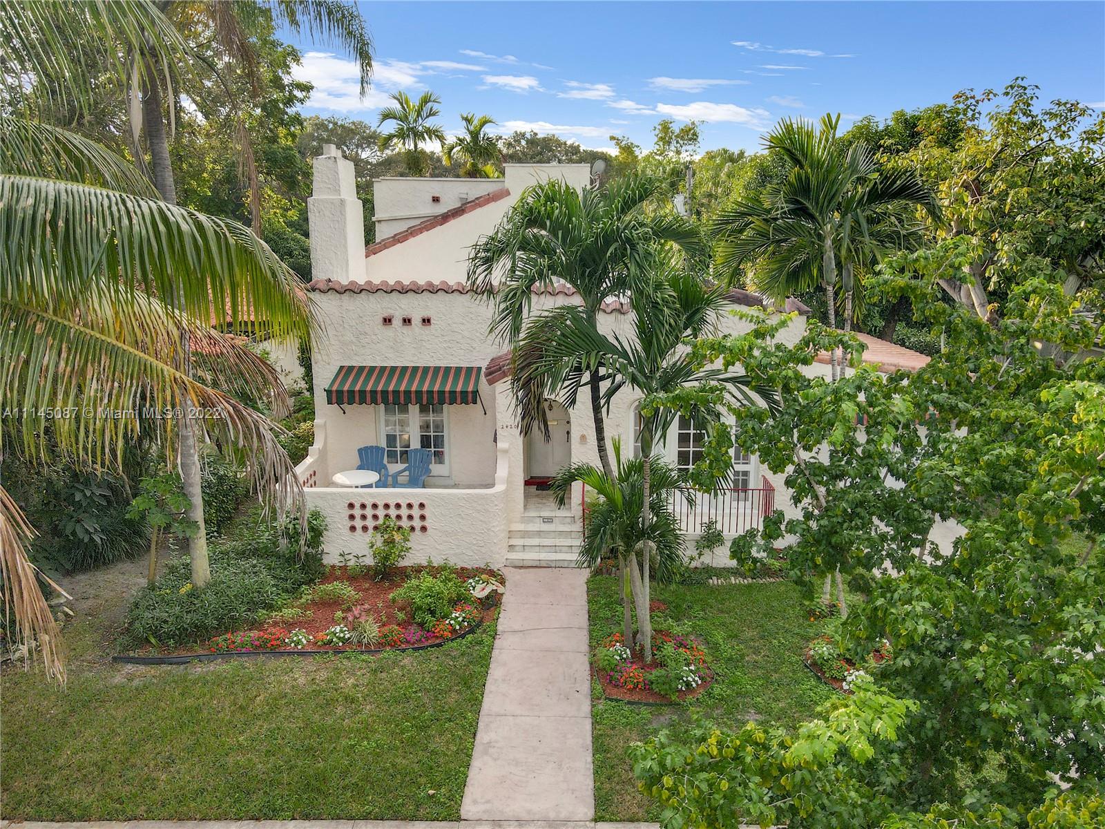 Historically designated 1923 Old Spanish originally designed by famed architect, H. George Fink. Vintage charm, character & many original architectural details throughout - classic stucco, crown molding, Oak & Dade County Pine wood floors & more. 10’ tall ceilings in all rooms. Charming main living room with functional fireplace. Formal dining room with Palladian door leading to courtyard. 4 Bedrooms plus Bonus room & 2 bathrooms. Spacious kitchen & oversized pantry. Ample storage & 1 car garage. Large backyard with fruit trees. On a quiet tree-lined street & only a couple of blocks from the Biltmore Hotel & Granada Golf Courses. Short distance to the Coral Gables Country Club, Downtown Gables, Miracle Mile, Venetian Pool, Salvador Park, Tennis & everything the City Beautiful has to offer!