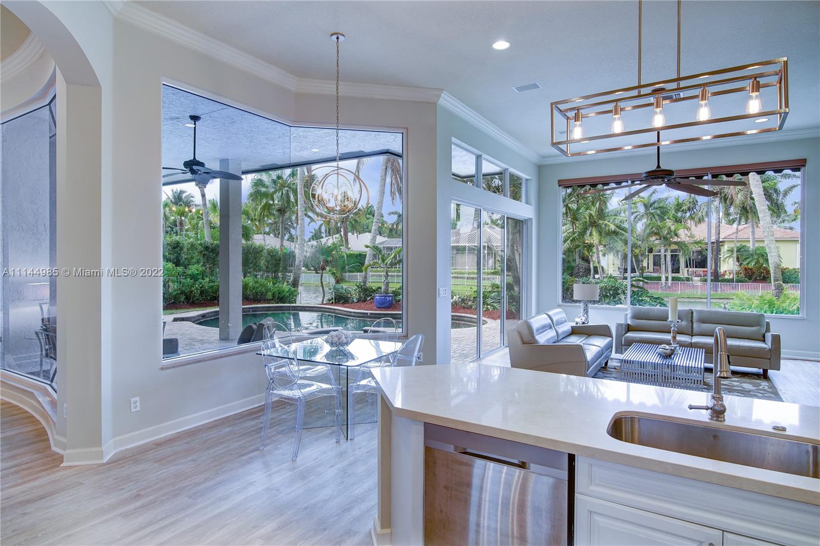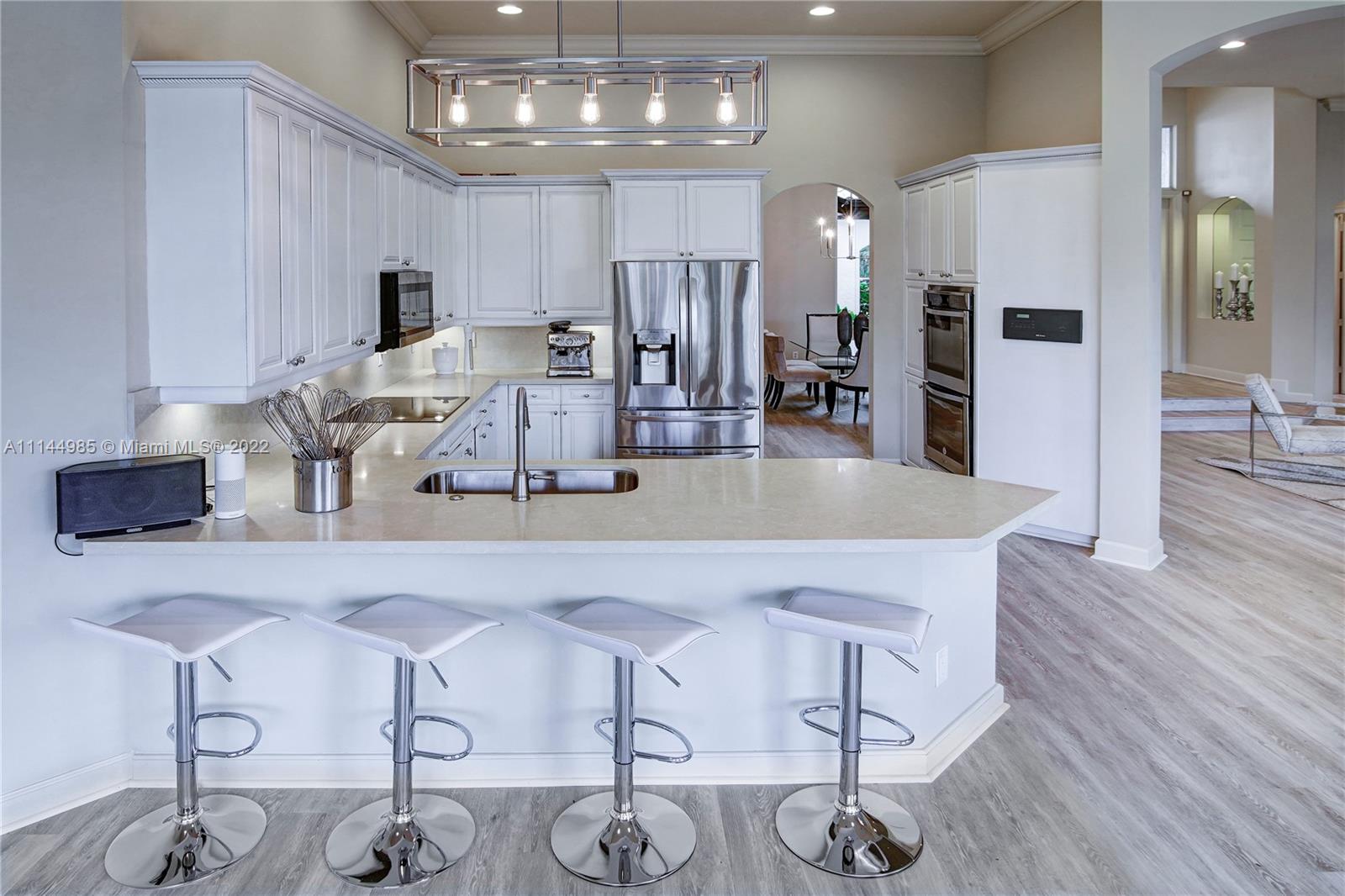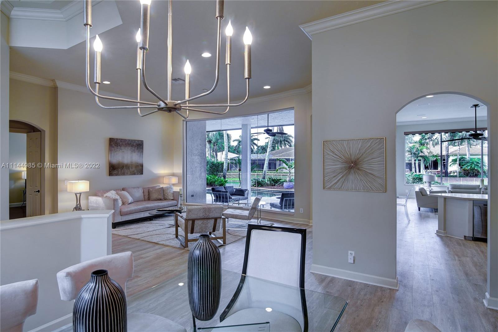 If you seen the rest come see the BEST! Exquisitely maintained, 5BD/3.5BA residence underwent a sophisticated redesign & renovation in 2019 white kitchen w/white quartz countertops & 2019 ss appliances *Freshly painted interior & exterior, wide plank flooring thrghot all main areas & 5th bd, hard wood in master and secondary bedrooms *Triple split open flrplan, 2019 two zone a/c syst, master bth, enhanced w/marble & quartz double vanities, jacuzzi tub & double showers, plus marble flrs & walls*Lagoon freeform pool & heated spa, covered patio & remote-controlled awning overlooking wide lakefront views*Nestled w/in one of Broward’s most prestigious guard gated communities,Hawks Landing offers an unparalleled lifestyle, amenities clubhouse w/tennis, fitness center, dble size Olympic pool.