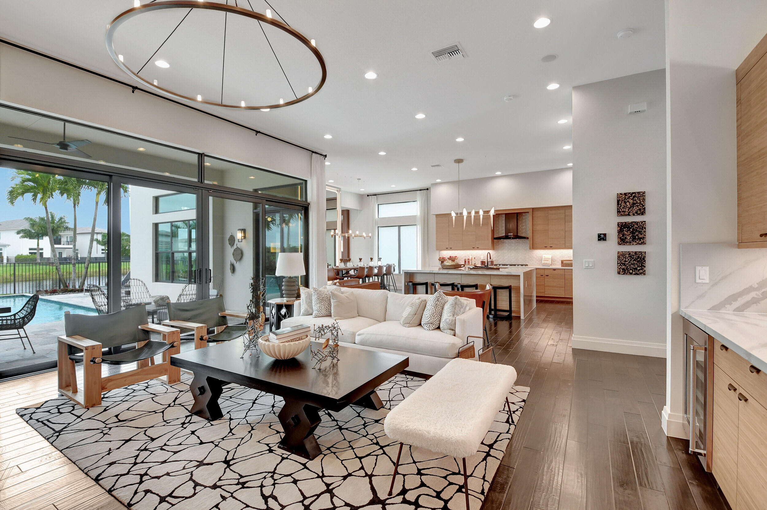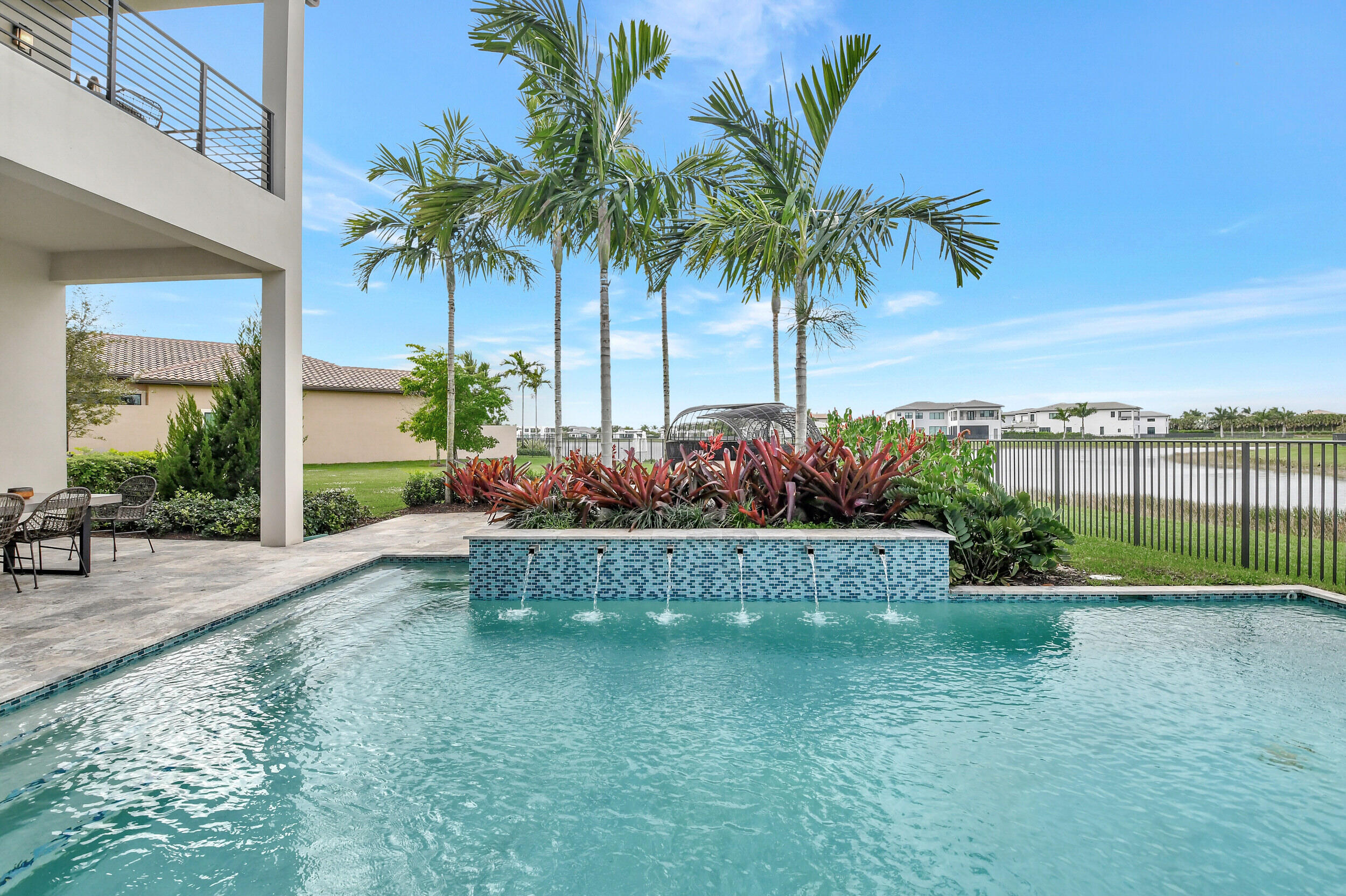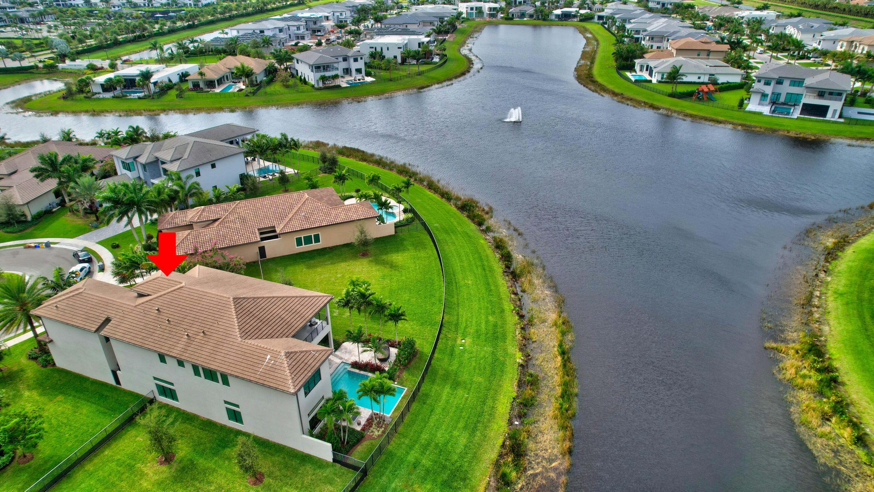 This elegant fully furnished turnkey model home sits on one of the most desirable lots at the end of the cul-de-sac. This oversized pie shaped lot has spectacular water views and the ability to build up to 4,000 Sq Ft additional space. The home features a covered verandah off the loft and the master bedroom with gorgeous water views. This amazing family house features a fully equipped game room, great room, gourmet kitchen, open floor plan, formal dining room, mud room, loft, and media room in addition to 5 en-suite bedrooms. All electronics and furnishings are included in the sale. There are two additional balconies and a spacious covered patio off the great room overlooking the beautiful contemporary pool and lake with raised sitting area, water features and planters. Plans are attached