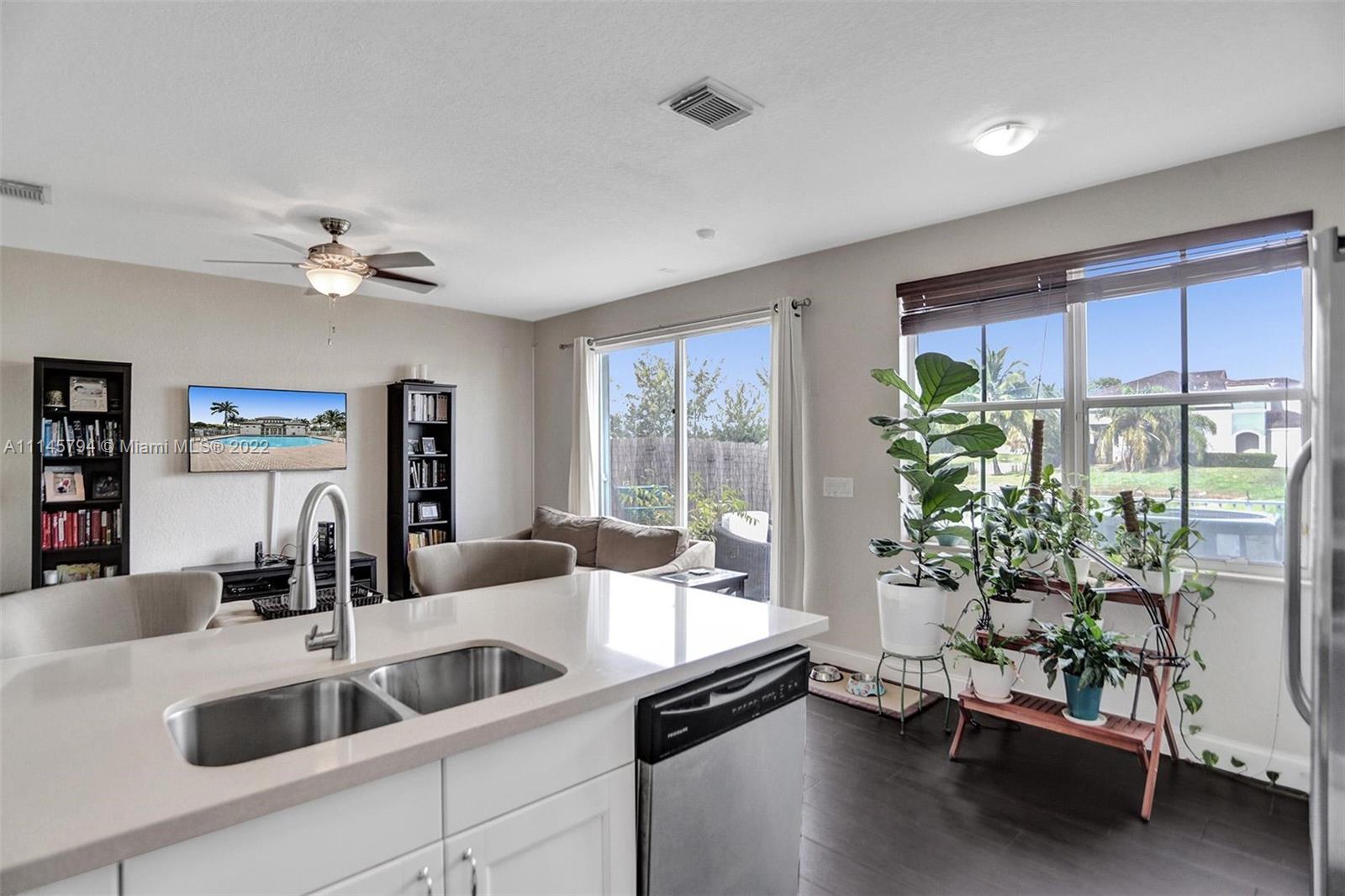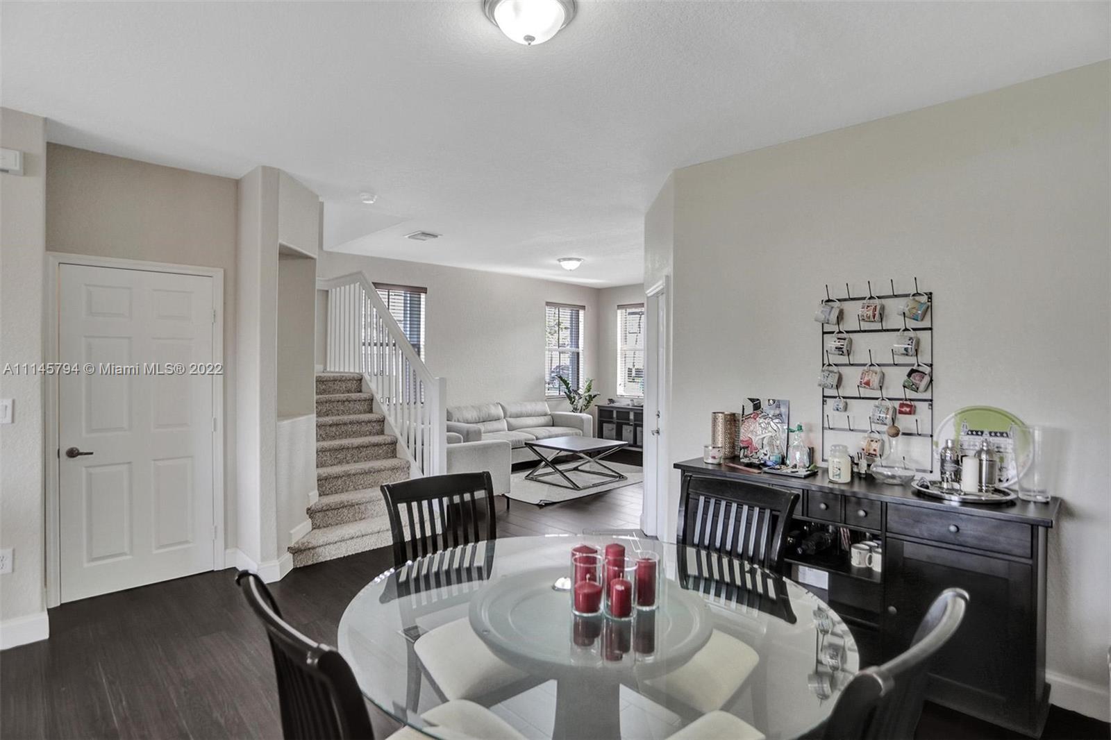 Sit back and relax as the sun sets over the expansive view of the lake from your back patio. Unit features tile downstairs and carpet upstairs. Upstairs bath recently retiled. Windward features a pool and playground. Residents also have access to the Islands at Doral Club with a Olympic sized pool, gym, and tennis courts. Located a quarter mile of Doral Legacy Park's incredible sports fields, event spaces, and kid's aquatic area. Easy access to the Florida turnpike so you can access all Miami has to offer.