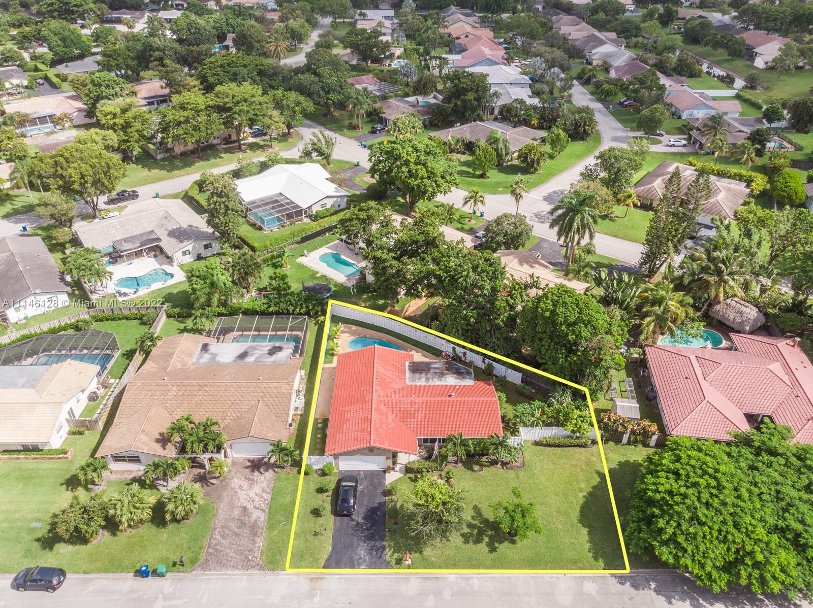 Beautiful Single Family Home in the highly desirable area of Ramblewood. NO HOA! This house is the pride of its owner. Freshly painted inside, no carpets, ceramic and laminate floors, A/C and Water Heater 2020, impact windows 2015, Gutters, washer and reface pool 2021, flat roof 2019, Pool pump, dryer, flag pole and Impact front door 2017, shutters, PVC white fence 2019, water sense toilets 2018, dimmers lights. Lots of fruit trees, large enclosed patio, pool, split floor plan. Close to restaurants & shopping include The Walk & Coral Square mall. Very central Coral Springs location close to major highways and public schools & transportation.
