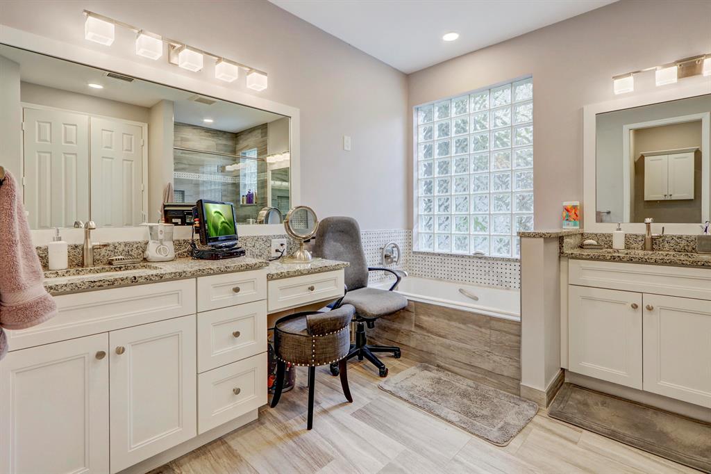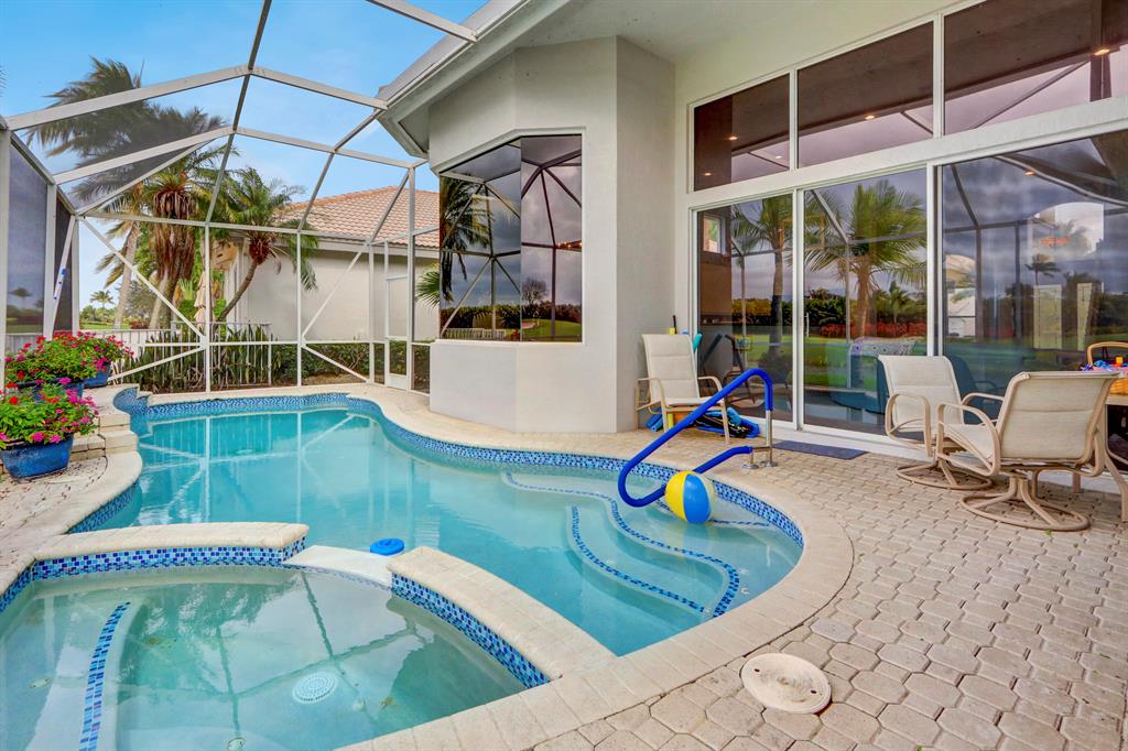 Beautiful lake & golf course views from the moment you enter fill this light & bright, charming two-story home of 4 bedrooms (Master + an office down), loft & 3 1/2 baths -- neutral & immaculate offering volume ceilings; white tile floors throughout & beige carpeting up the stairs; decorative columns; an open kitchen with high-gloss beige 42'' cabinetry, granite countertops & a lovely breakfast nook; a spacious Master Suite with walk-in closets; remodeled Master and secondary bathrooms; flat wall finish; upgraded LED high-hat lighting; ceiling fans & custom window blinds; and a private screened patio with a newly resurfaced pool & glass tiles overlooking the lake & golf course! A/C systems - 2018, water heater - 2019, New roof - 2018.
