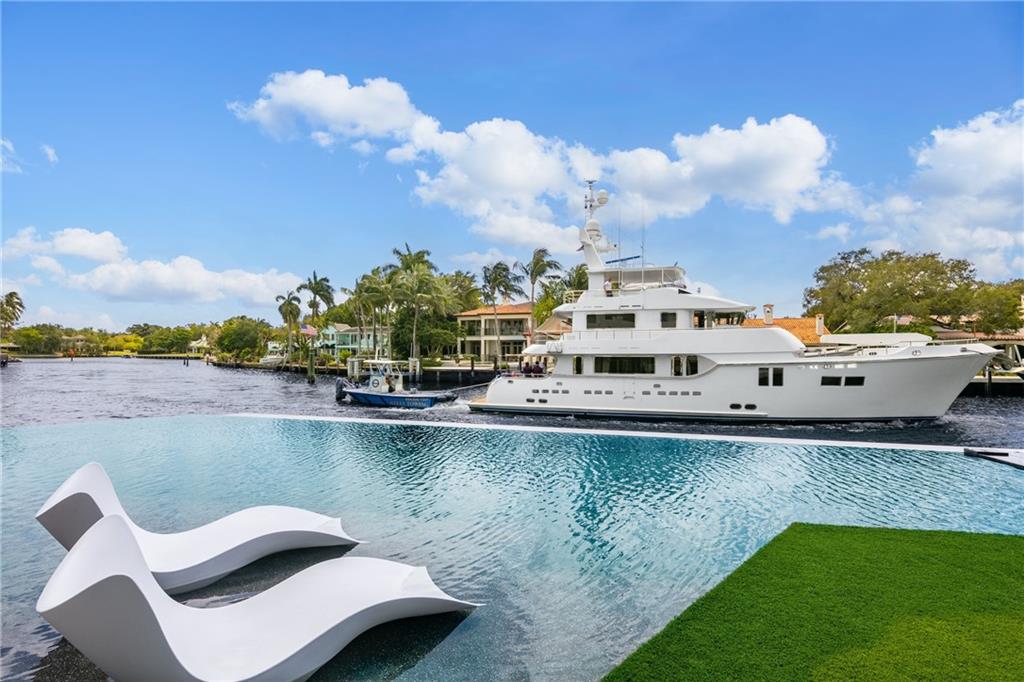 Breathtaking one-of-a-kind estate! This modern 3-story point lot offers 250' of deep WF. Bright, open floor plan boasts breathtaking River views. Fastidious craftsmanship & attention to detail w/ultra high-end finishes throughout. Luxurious features include game room, theater, temp controlled wine cellar, generator, natural & propane gas, boat lift, oversized kitchen, guest house & 3rd level club room. Huge primary suite w/water views, his & hers baths, closets & massage room. Also find a gym & spa that can be converted into a secondary suite. Resort style backyard w/lap pool & numerous covered lounging areas. Located in gated Sagamore Cove in Las Olas Isles. With quick & easy access to the ICW & inlet, this location is a yacht owner's paradise! Walking distance to Las Olas restaurants.