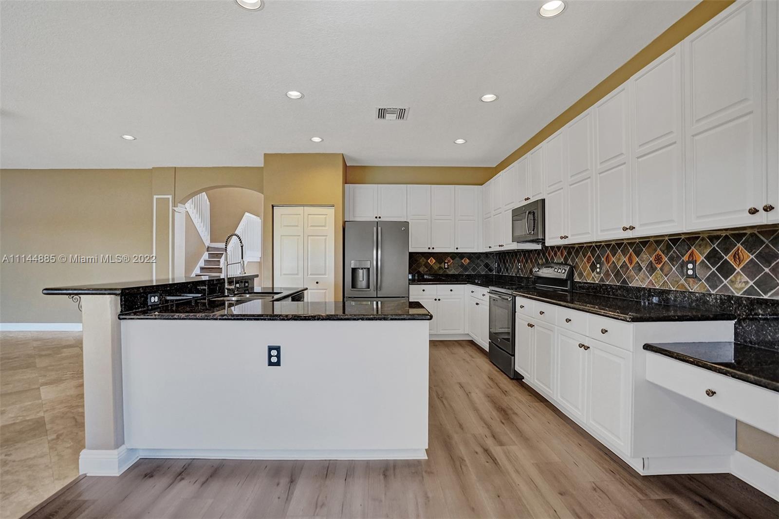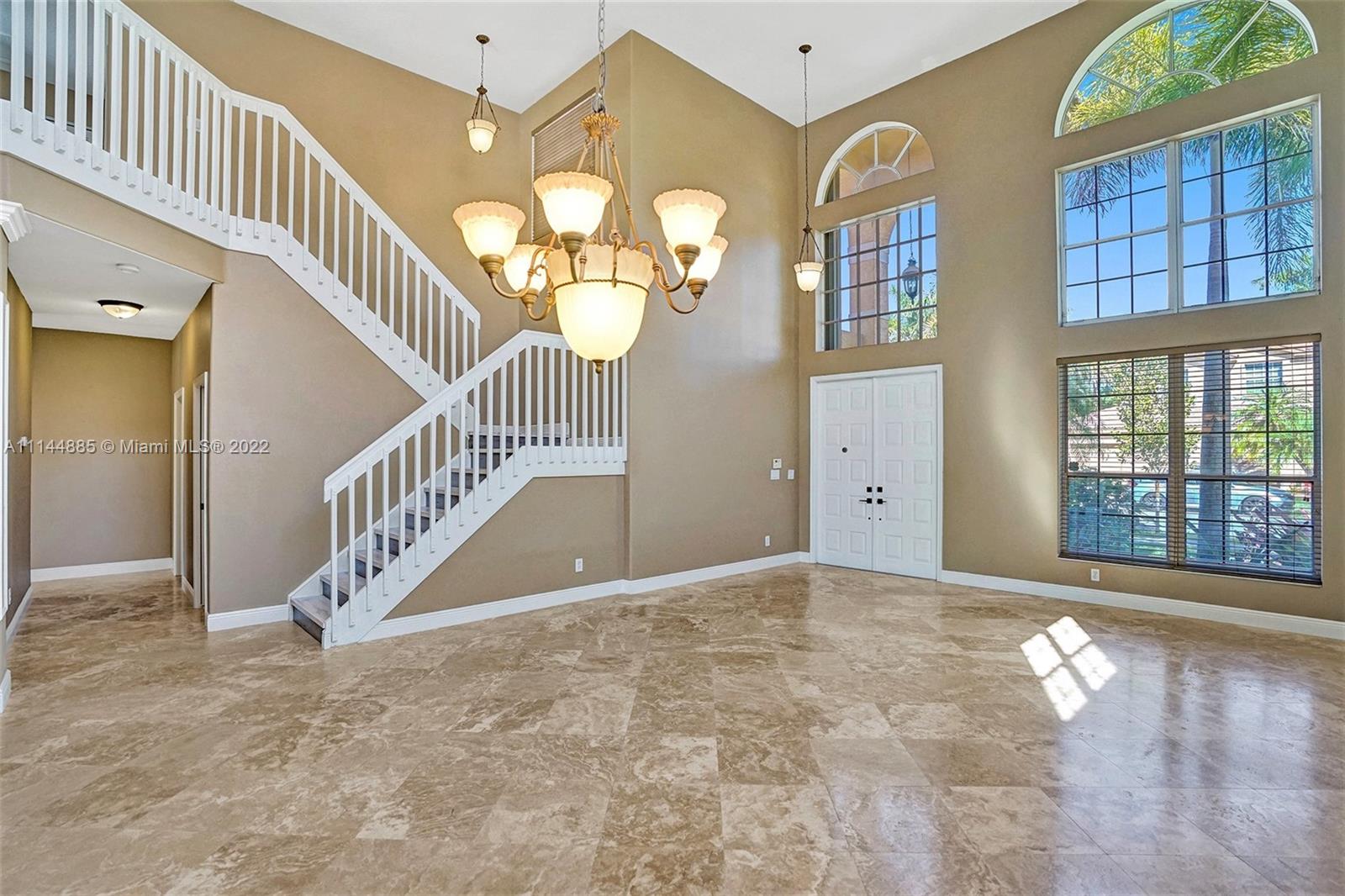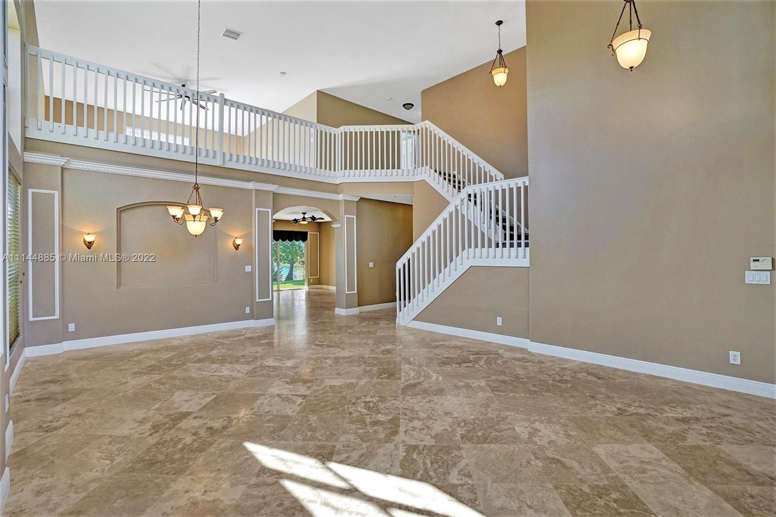 Spectacular Waterfront home that greets you with 23ft Vaulted Ceiling, Grand windows, Lighted Accent wall and Travertine floors! Beautifully upgraded to include fresh paint, Recessed lighting, Brand New Flooring, lighting fixtures, Ceiling fans, Washer/dryer and Water Heater! Includes large Loft and 1st floor Master bedroom. Every room except one, overlooks the lake! All bathrooms remodeled with Marble/Quartz countertops, Travertine/Porcelain tiles, Vessel sinks and Wood vanities. Entertain guests in the open living areas and spacious kitchen that features Slate appliances, Granite countertops, wood cabinets and Breakfast nook. Relax in your own tropical oasis, with picturesque lake views and sunsets from the covered patio or balcony. Do not miss the opportunity to own this stunning home!