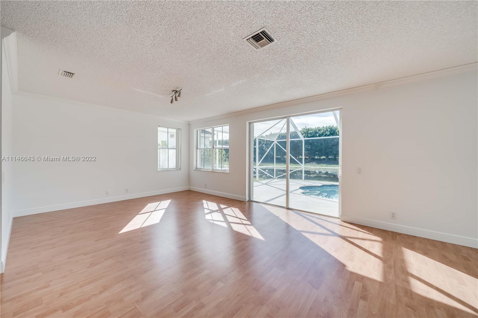 This house has it all! Beautiful lake front and pool. Nice front porch. 4 bedrooms plus an office or study area, 2 and 1/2 bathrooms. Separated living room and dining room. Nice and big breakfast area. Huge family room. Marble countertops. Master suite with double walking closets. His and hers vanitories, roman bath tub and separated glass enclosed shower. Accordion Shutters. Laminated wood floors. House full of light. Just painted inside and out. Gated Community with common areas, such as pool, basketball court, kids playground. Walking distance to top Elementary School Gator Run. A+ School district. Easy and fast access to highways. (measurements are approximate)