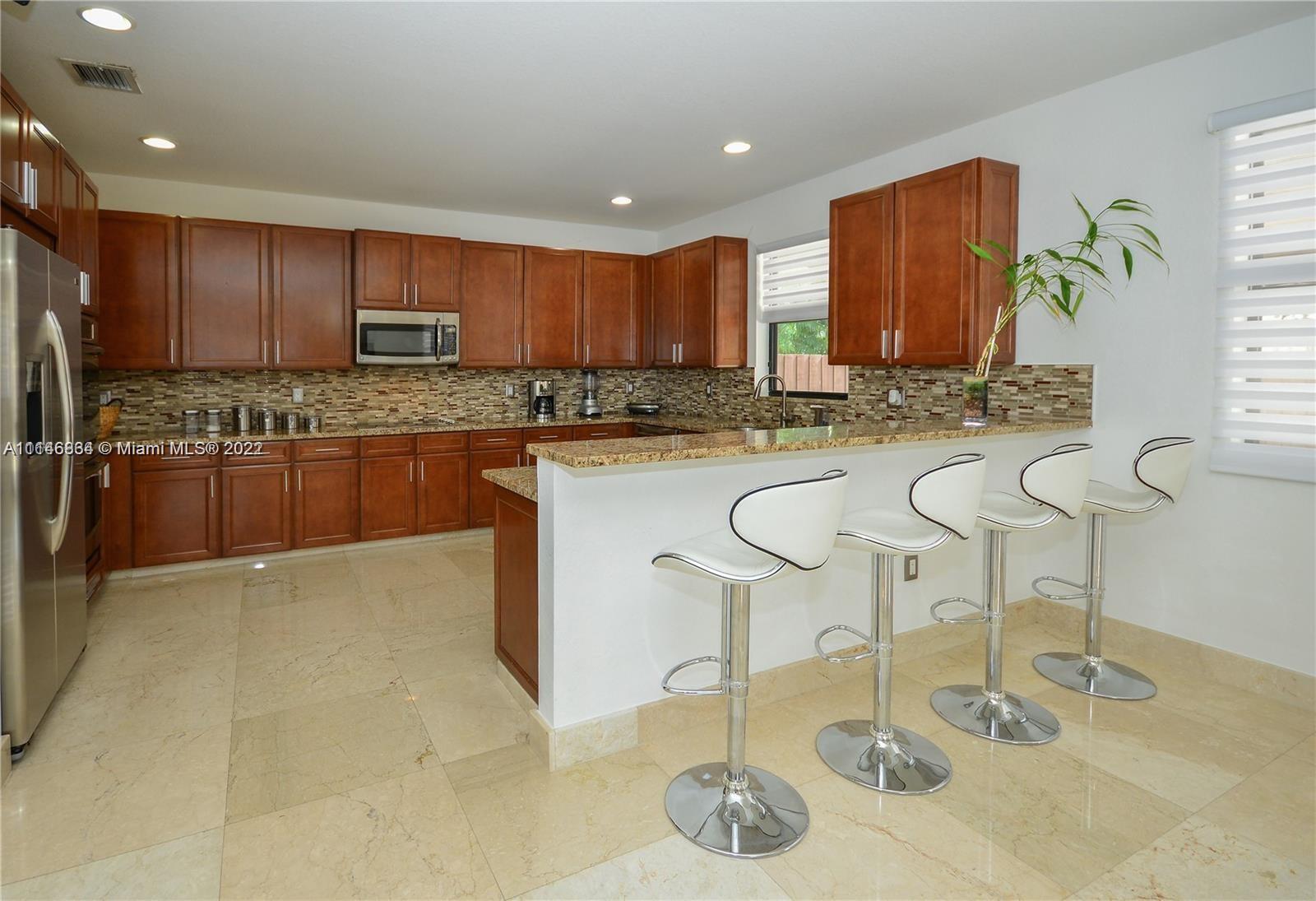 Corner lot single family home located in the prestigious gated community at Grand Bay Estates at Doral. European style Open & oversized kitchen integrating top of the stainless steel line appliances. Grand staircase leading to 2nd floor where you will find an expansive master suite with a huge walk-in closet & bath, & 3 additional rooms in which 2 share one bathroom and the other room has a private bathroom. This 4/4 baths, 2 story contemporary home features 3,128 SqFt of living area, located in a 5,566 Sq.Ft corner lot with direct lake views, & a spacious patio with room for pool or Jacuzzi. Amenities include 28k square-foot clubhouse, pools, tennis/basketball courts, gym & more! Close to great public & private schools, supermarkets, restaurants, & new Doral CityPlace shopping mall.