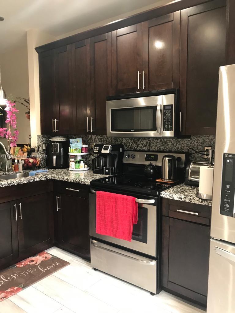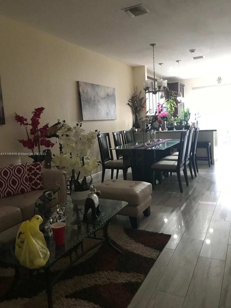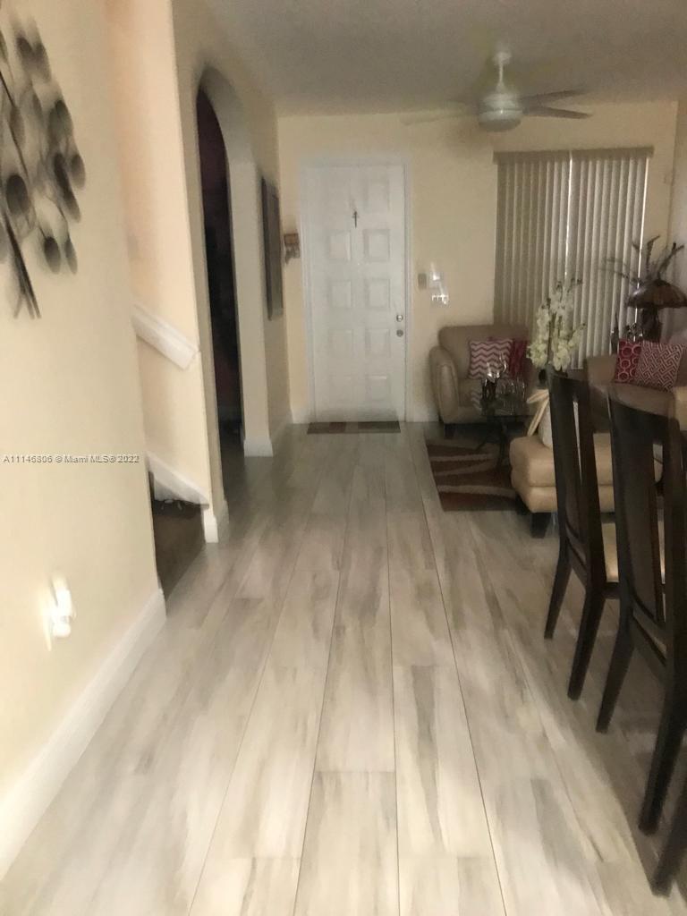 Spectacular 4 bedrooms/ 3 bathrooms townhouse, title floors, stainless steel appliances. 1 bedroom +full bathroom downstairs. New air conditioning, accordion shutters, tile floors throughout the house except for the stairs that have carpet. Electric fans in all rooms and social areas, semi-automatic blinds throughout the house, laundry room on first floor. Beautiful clubhouse with recently remodeled pool, play ground, gym, the association fee is $298 per month, Walnut Creek is one of the best associations in the area, do not let your buyer lose this opportunity.