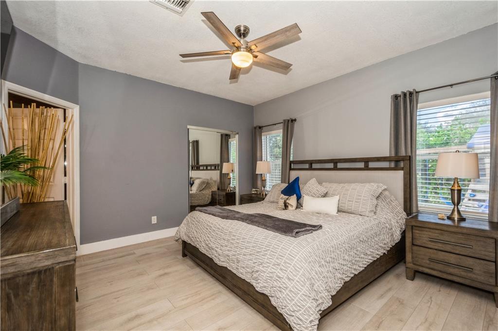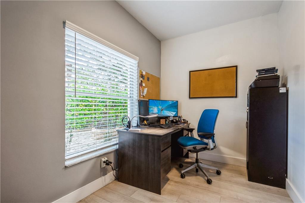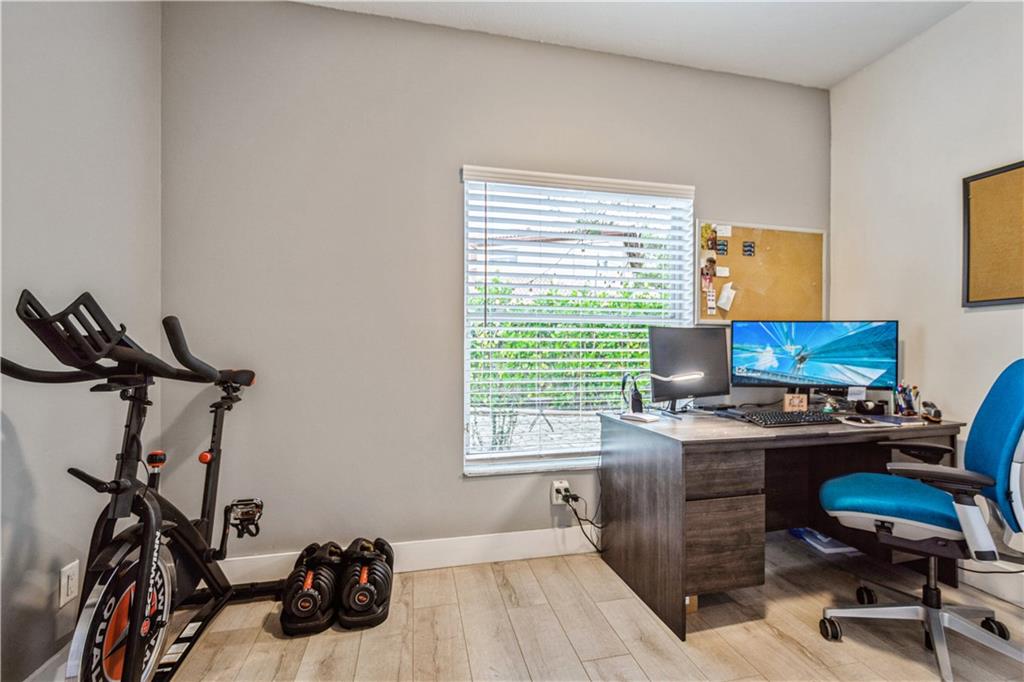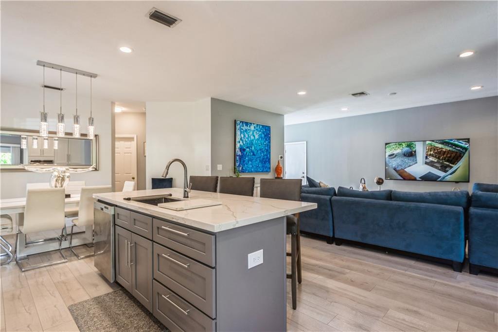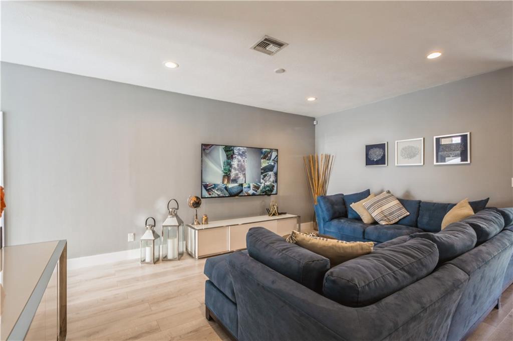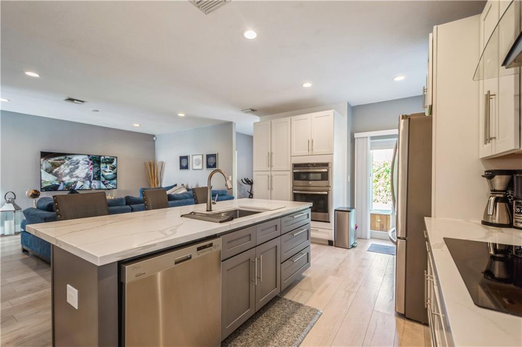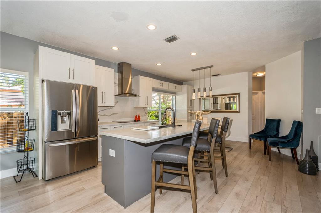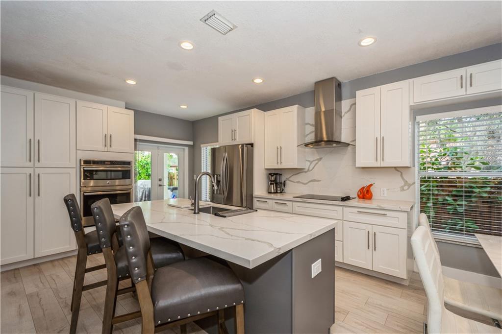 You don't see houses for sale in this neighborhood too often, and this one is beautiful. The sellers meticulously updated this 3-bedroom, 2-bath home with the latest, modern design features. The entire house has been updated. The custom-designed kitchen features solid wood cabinetry with soft-close doors, quartz countertops, stainless steel appliances, extractor range fan, and a central island with snack bar. Other features: den/office, laminate floors throughout, new air conditioner, new impact glass doors, exterior surveillance cameras, fenced yard with stone patio and fire pit, freshly painted inside and out, and low HOA dues. There's a lovely community pool and children's play area, too. This is close to everything--shopping, schools, parks, expressways. You will love this home!